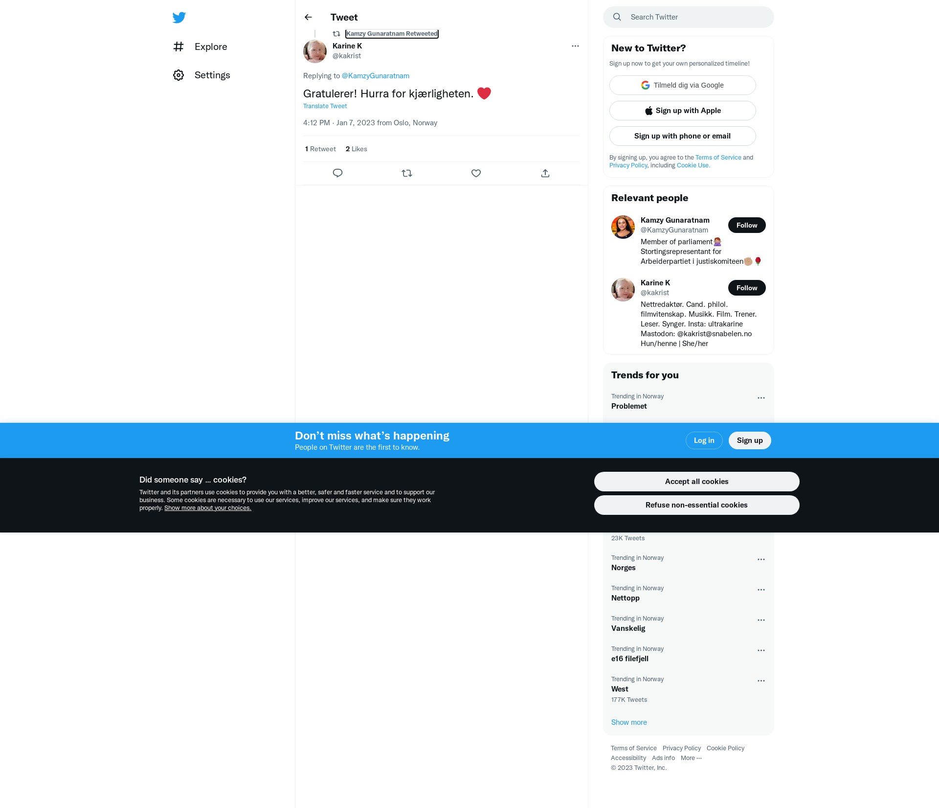 RT @kakrist: @KamzyGunaratnam Gratulerer! Hurra for kjærligheten. ❤