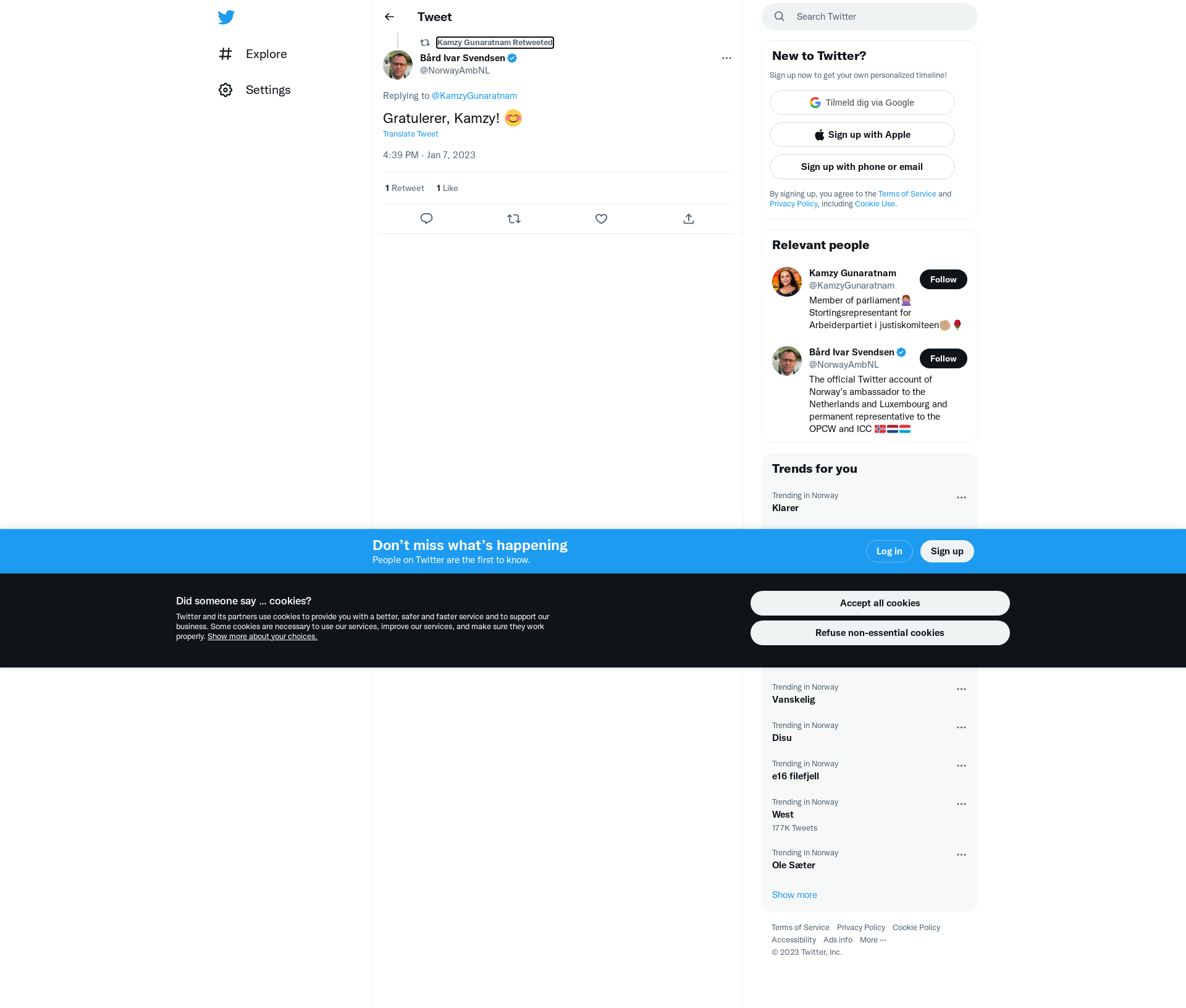 RT @NorwayAmbNL: @KamzyGunaratnam Gratulerer, Kamzy! 😊