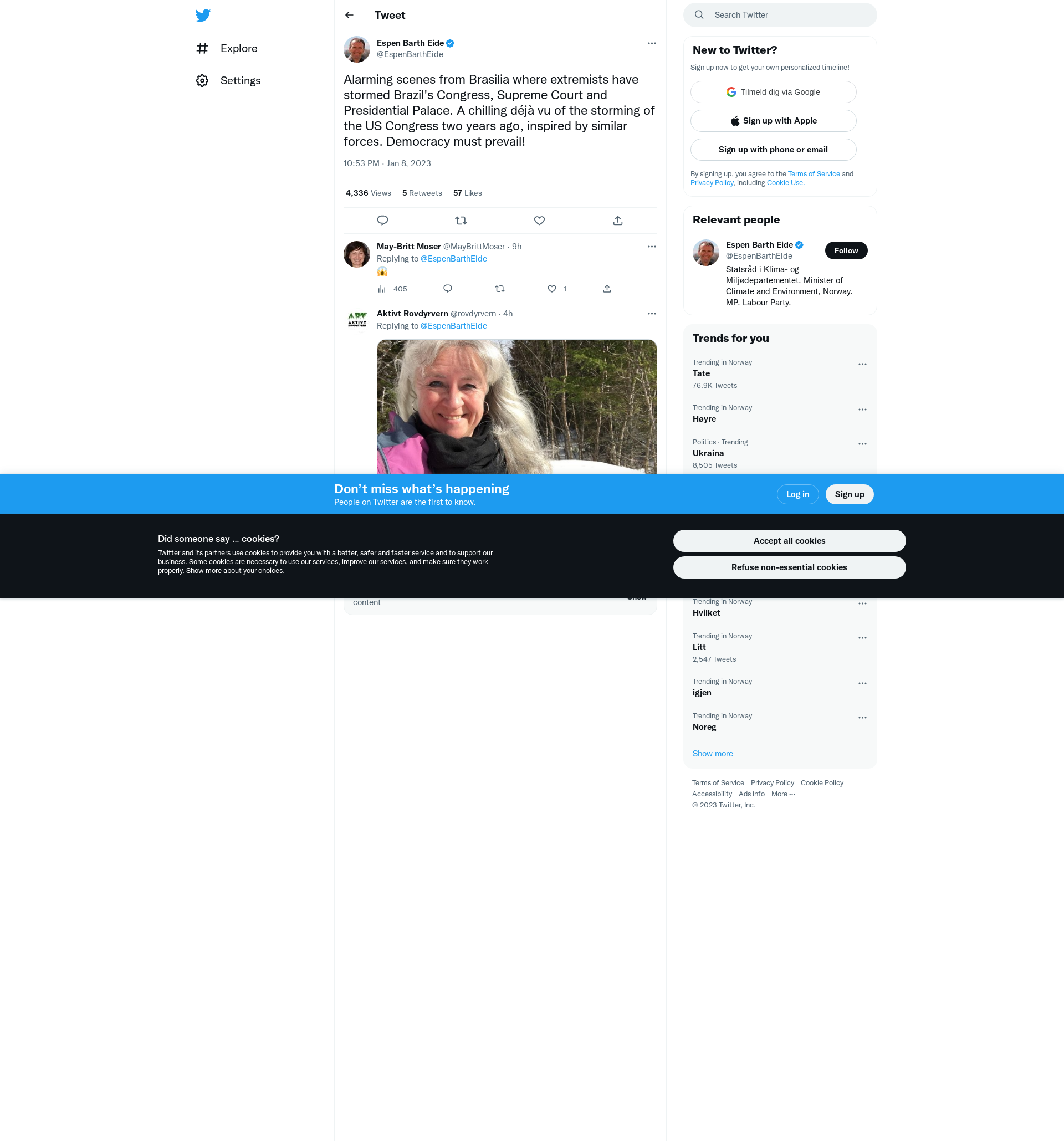 Alarming scenes from Brasilia where extremists have stormed Brazil's Congress, Supreme Court and Presidential Palace. A chilling déjà vu of the storming of the US Congress two years ago, inspired by similar forces. Democracy must prevail!