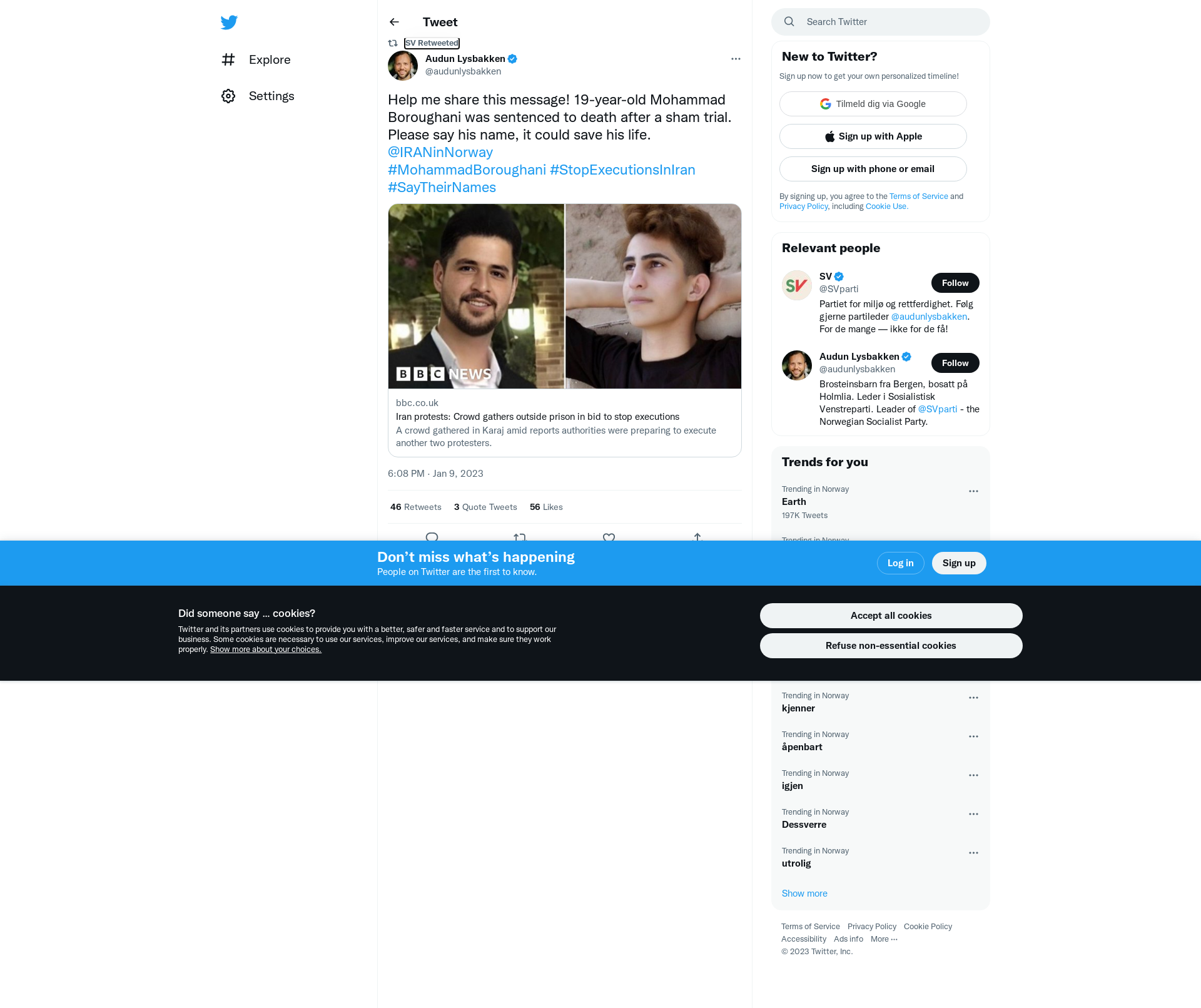 RT @audunlysbakken: Help me share this message! 19-year-old Mohammad Boroughani was sentenced to death after a sham trial. Please say his name, it could save his life. @IRANinNorway\n#MohammadBoroughani #StopExecutionsInIran #SayTheirNames https://t.co/Ks8pjAt3sQ