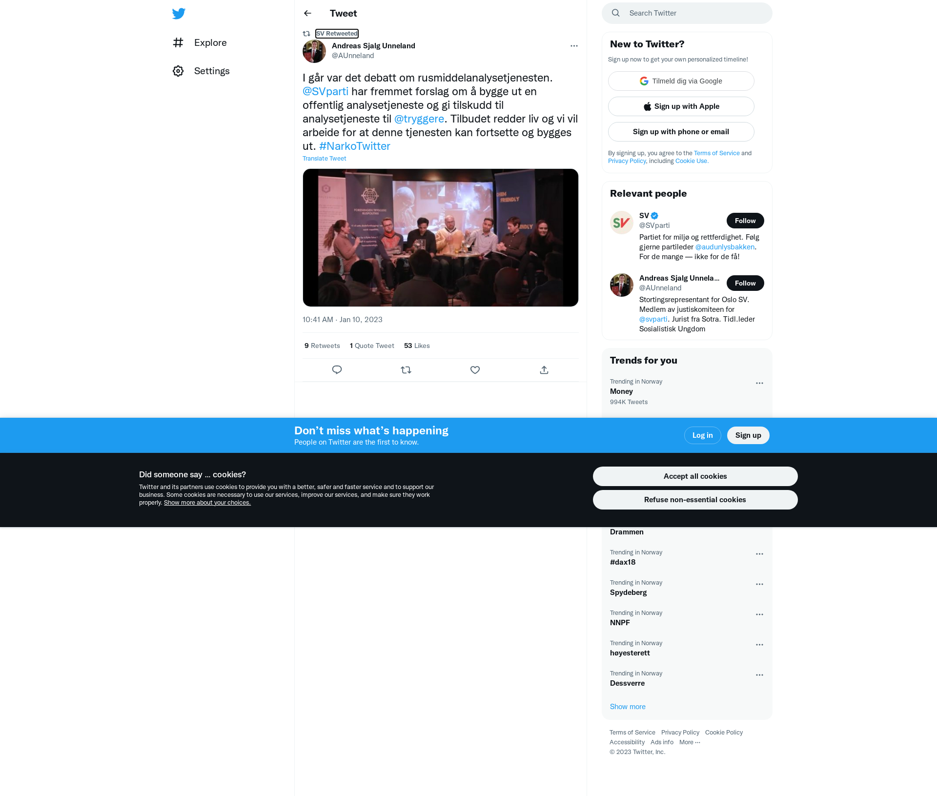 RT @AUnneland: I går var det debatt om rusmiddelanalysetjenesten. @SVparti har fremmet forslag om å bygge ut en offentlig analysetjeneste og gi tilskudd til analysetjeneste til @tryggere. Tilbudet redder liv og vi vil arbeide for at denne tjenesten kan fortsette og bygges ut. #NarkoTwitter https://t.co/zJPGkPhEdE