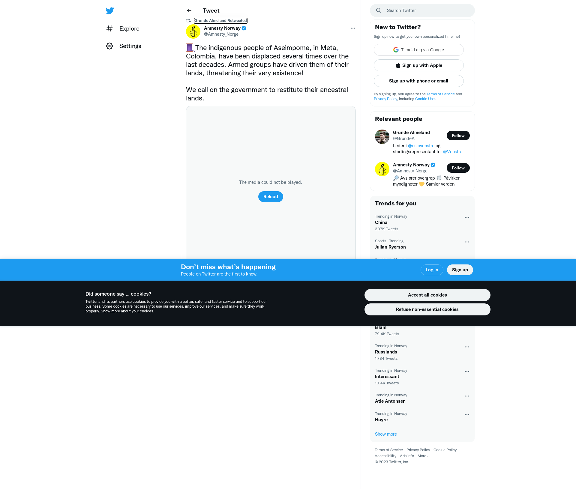 RT @Amnesty_Norge: 🧵The indigenous people of Aseimpome, in Meta, Colombia, have been displaced several times over the last decades. Armed groups have driven them of their lands, threatening their very existence!\n\nWe call on the government to restitute their ancestral lands. https://t.co/c98eJewHpW