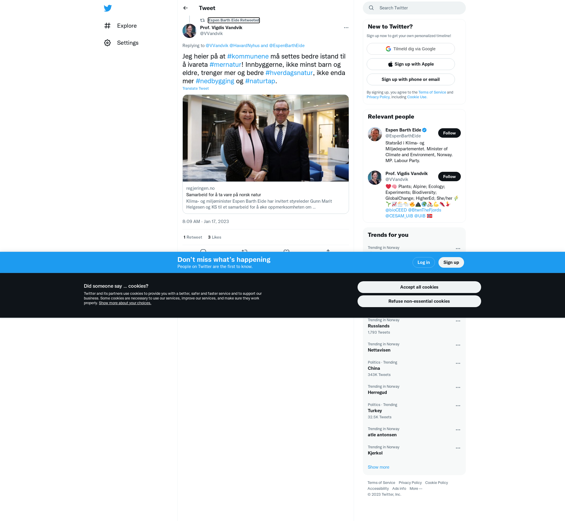RT @VVandvik: @HavardNyhus @EspenBarthEide Jeg heier på at #kommunene må settes bedre istand til å ivareta #mernatur! Innbyggerne, ikke minst barn og eldre, trenger mer og bedre #hverdagsnatur, ikke enda mer #nedbygging og #naturtap. https://t.co/RMghGIEMyW