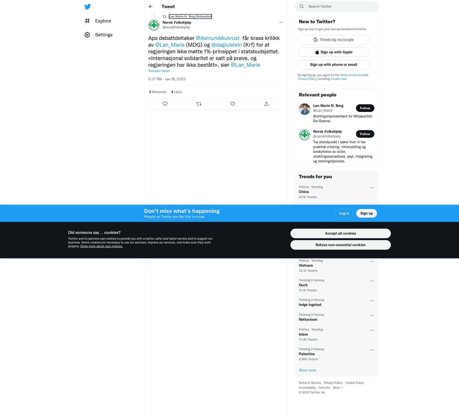 RT @norskfolkehjelp: Aps debattdeltaker @AsmundAukrust får krass kritikk av @Lan_Marie (MDG) og @dagiulstein (Krf) for at regjeringen ikke møtte 1%-prinsippet i statsbudsjettet. «Internasjonal solidaritet er satt på prøve, og regjeringen har ikke bestått», sier @Lan_Marie