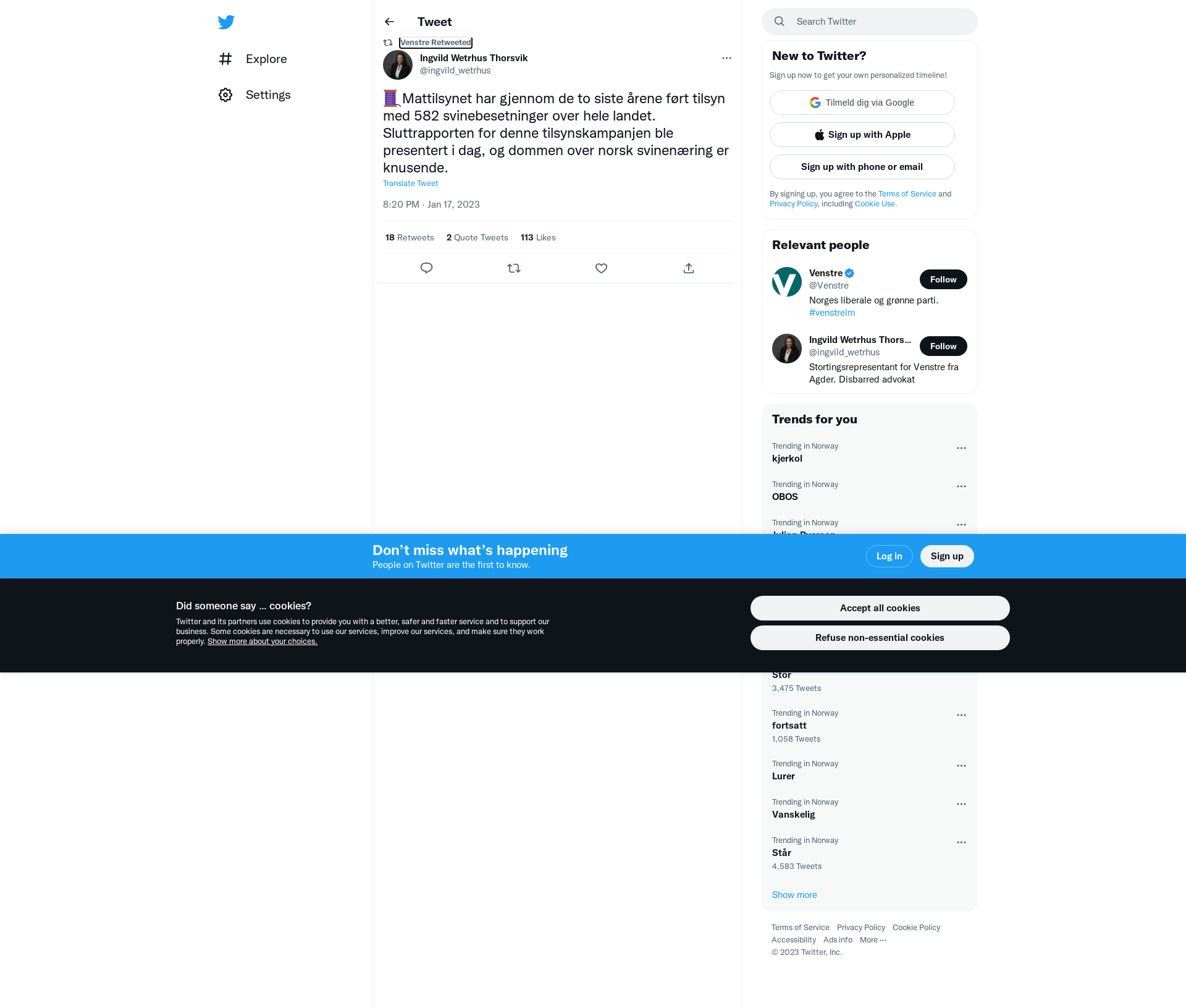 RT @ingvild_wetrhus: 🧵Mattilsynet har gjennom de to siste årene ført tilsyn med 582 svinebesetninger over hele landet. Sluttrapporten for denne tilsynskampanjen ble presentert i dag, og dommen over norsk svinenæring er knusende.