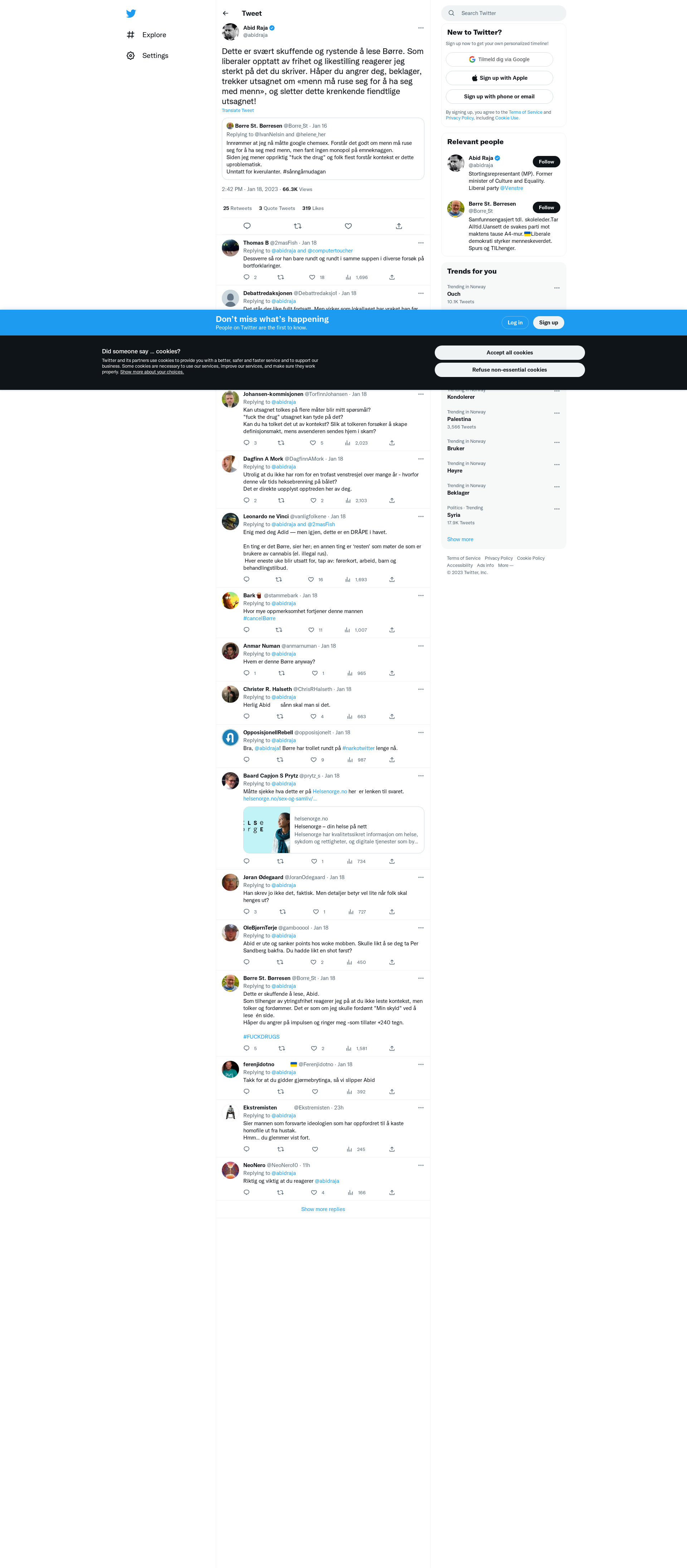 Dette er svært skuffende og rystende å lese Børre. Som liberaler opptatt av frihet og likestilling reagerer jeg sterkt på det du skriver. Håper du angrer deg, beklager, trekker utsagnet om «menn må ruse seg for å ha seg med menn», og sletter dette krenkende fiendtlige utsagnet!
