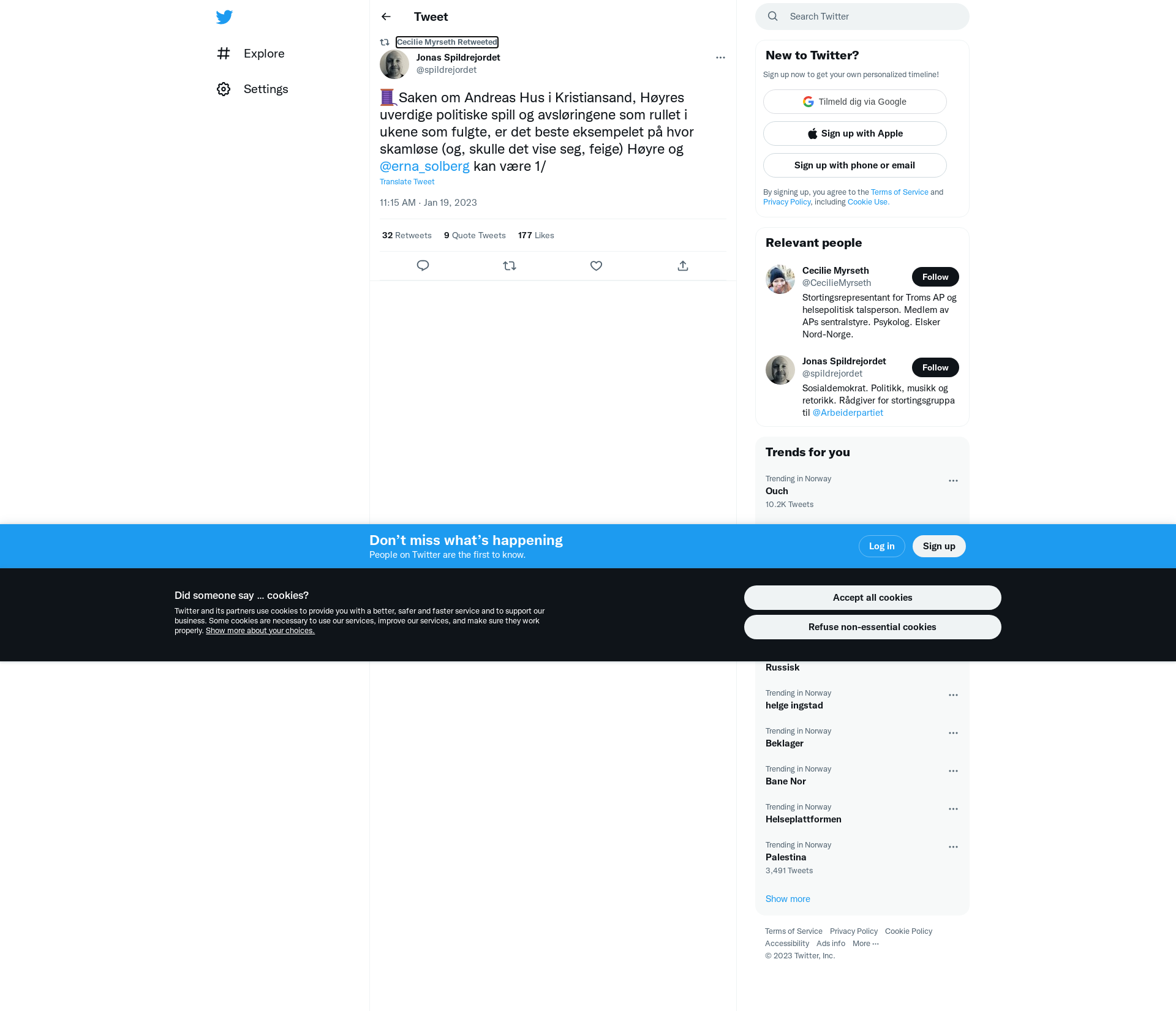 RT @spildrejordet: 🧵Saken om Andreas Hus i Kristiansand, Høyres uverdige politiske spill og avsløringene som rullet i ukene som fulgte, er det beste eksempelet på hvor skamløse (og, skulle det vise seg, feige) Høyre og @erna_solberg kan være 1/