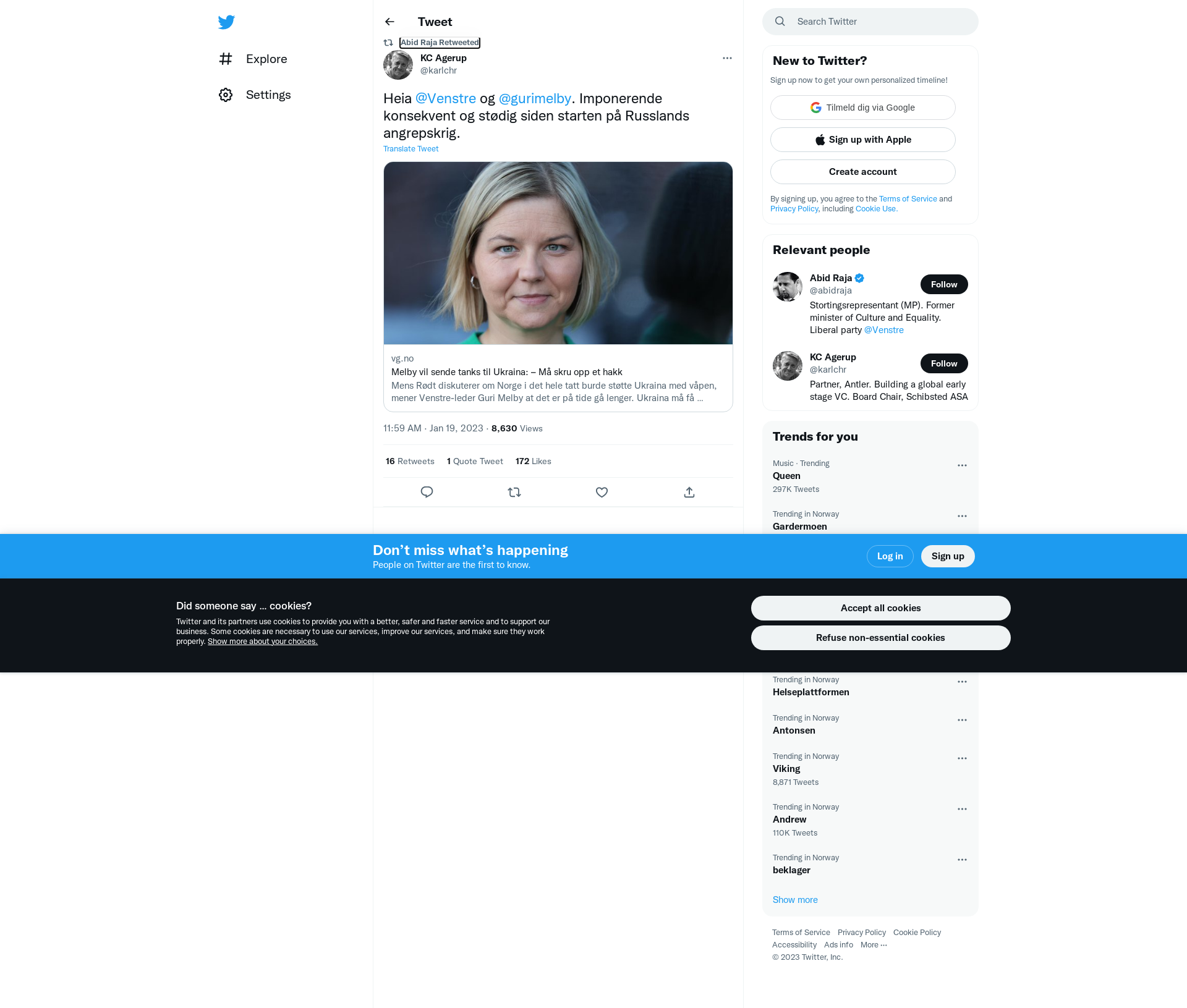 RT @karlchr: Heia @Venstre og @gurimelby. Imponerende konsekvent og stødig siden starten på Russlands angrepskrig. https://t.co/Nr5ggWpOa1