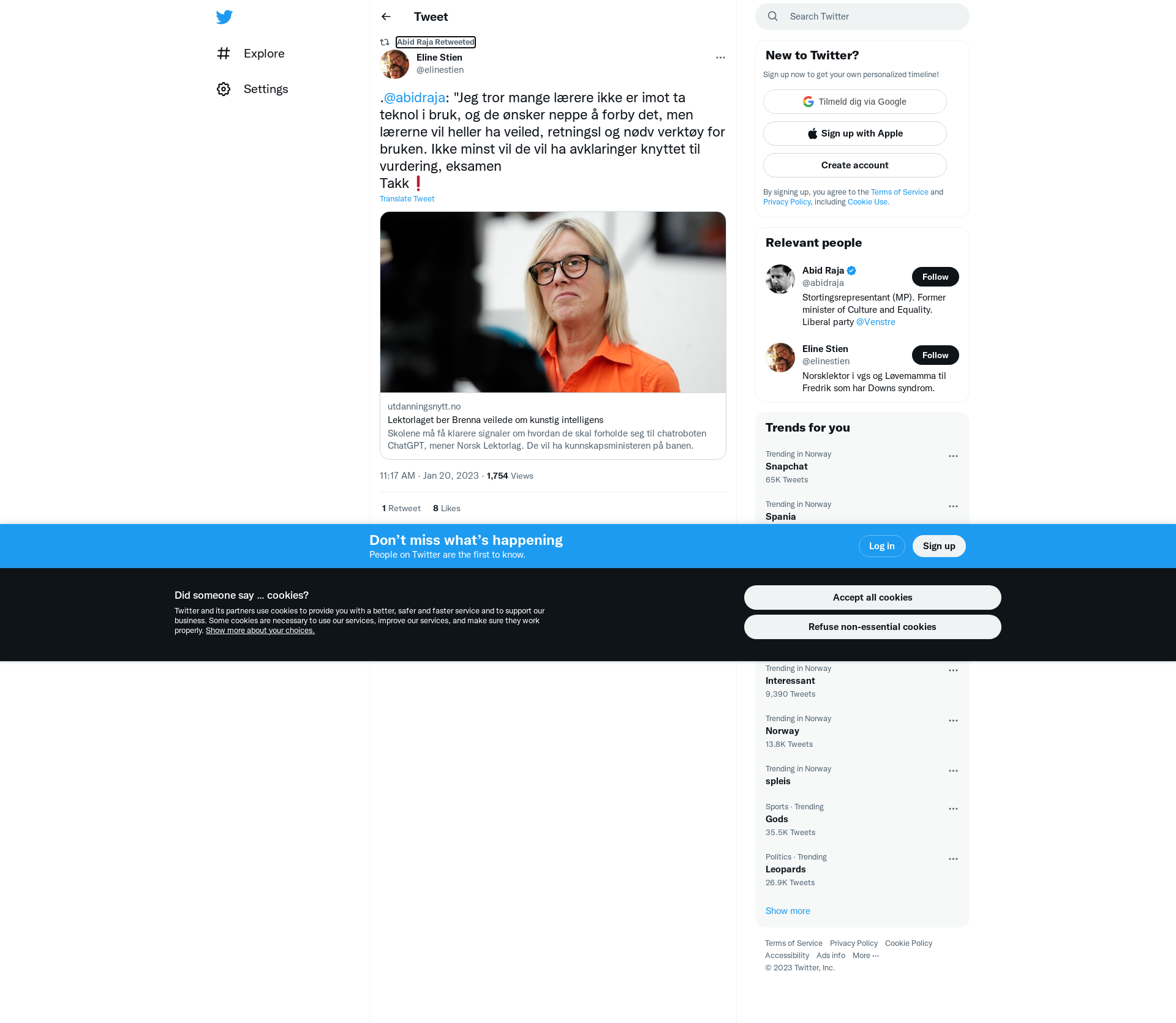 RT @elinestien: .@abidraja: "Jeg tror mange lærere ikke er imot ta teknol i bruk, og de ønsker neppe å forby det, men lærerne vil heller ha veiled, retningsl og nødv verktøy for bruken. Ikke minst vil de vil ha avklaringer knyttet til vurdering, eksamen \nTakk❗️ https://t.co/HuDFahGPl9