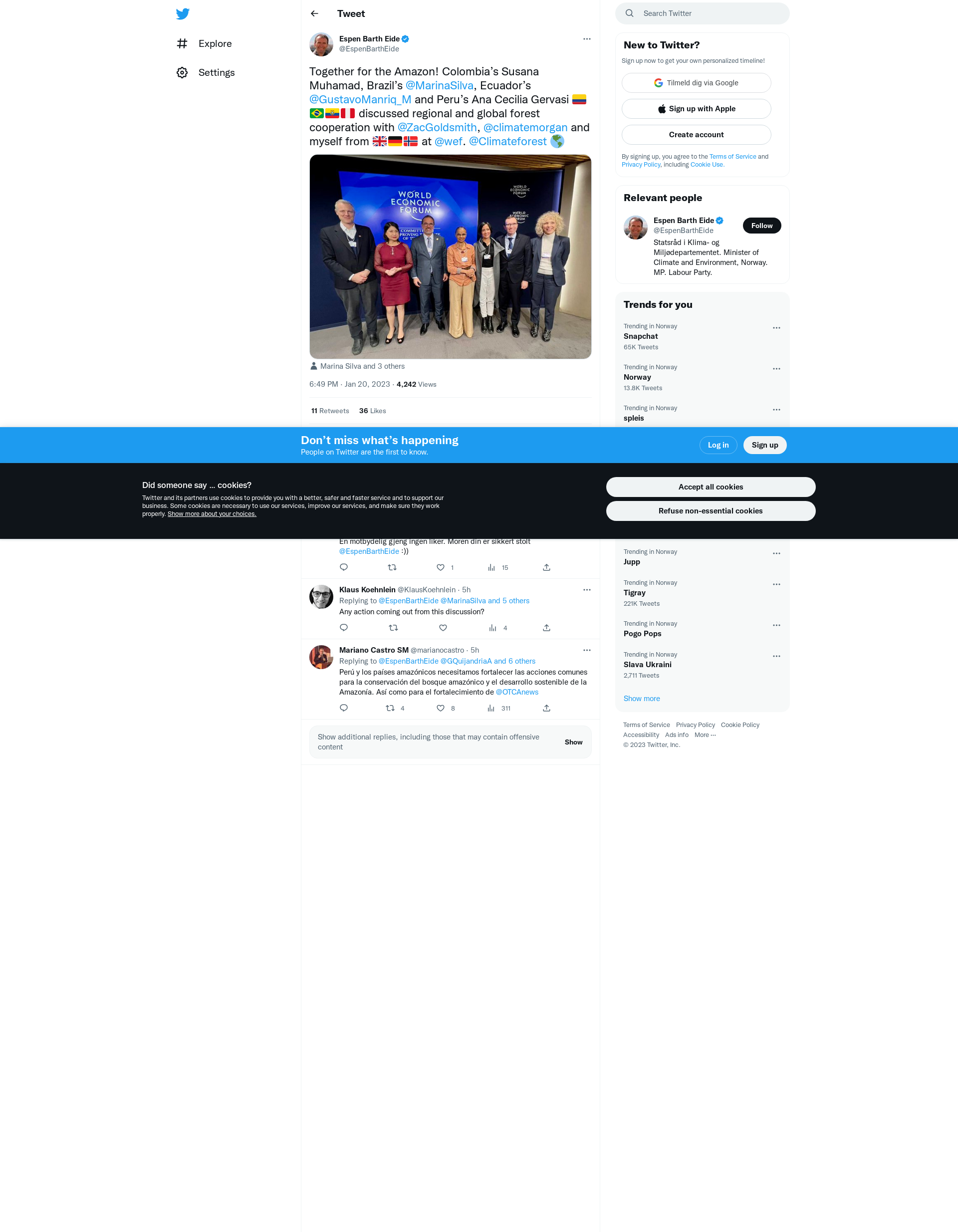 Together for the Amazon! Colombia’s Susana Muhamad, Brazil’s @MarinaSilva, Ecuador’s @GustavoManriq_M and Peru’s Ana Cecilia Gervasi 🇨🇴🇧🇷🇪🇨🇵🇪 discussed regional and global forest cooperation with @ZacGoldsmith, @climatemorgan and myself from 🇬🇧🇩🇪🇳🇴 at @wef. @Climateforest 🌎 https://t.co/07UrnaA4x2