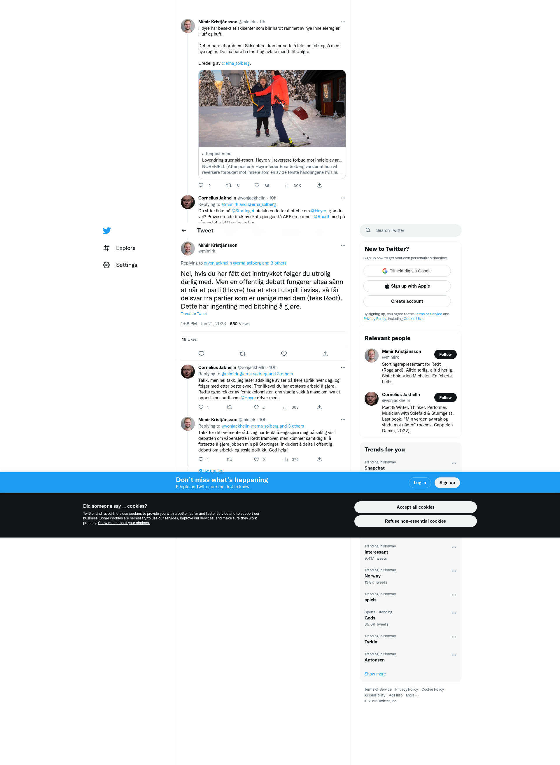 @vonjackhelln @erna_solberg @Stortinget @Hoyre @Raudt Nei, hvis du har fått det inntrykket følger du utrolig dårlig med. Men en offentlig debatt fungerer altså sånn at når et parti (Høyre) har et stort utspill i avisa, så får de svar fra partier som er uenige med dem (feks Rødt). Dette har ingenting med bitching å gjøre.