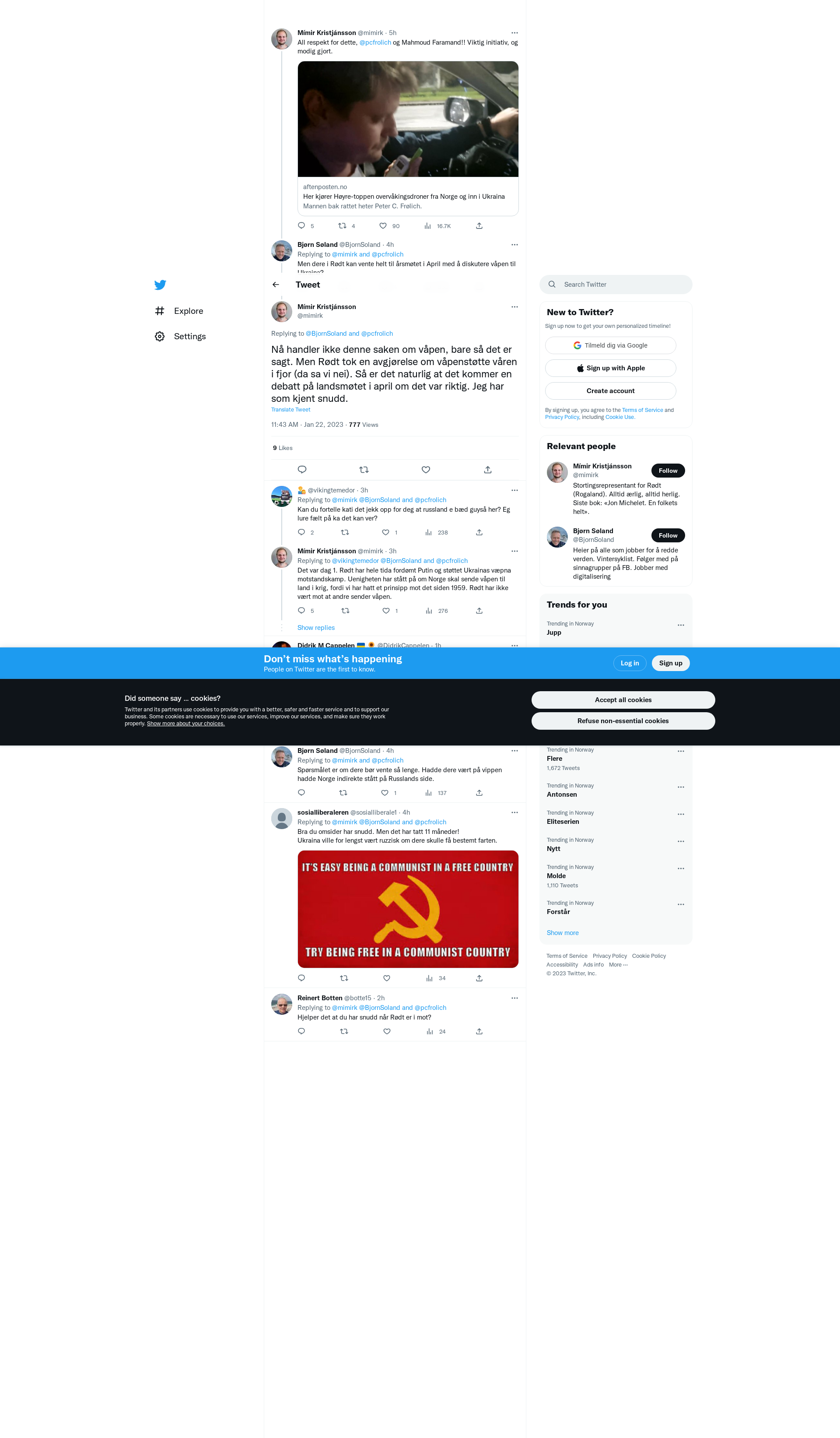 @BjornSoland @pcfrolich Nå handler ikke denne saken om våpen, bare så det er sagt. Men Rødt tok en avgjørelse om våpenstøtte våren i fjor (da sa vi nei). Så er det naturlig at det kommer en debatt på landsmøtet i april om det var riktig. Jeg har som kjent snudd.