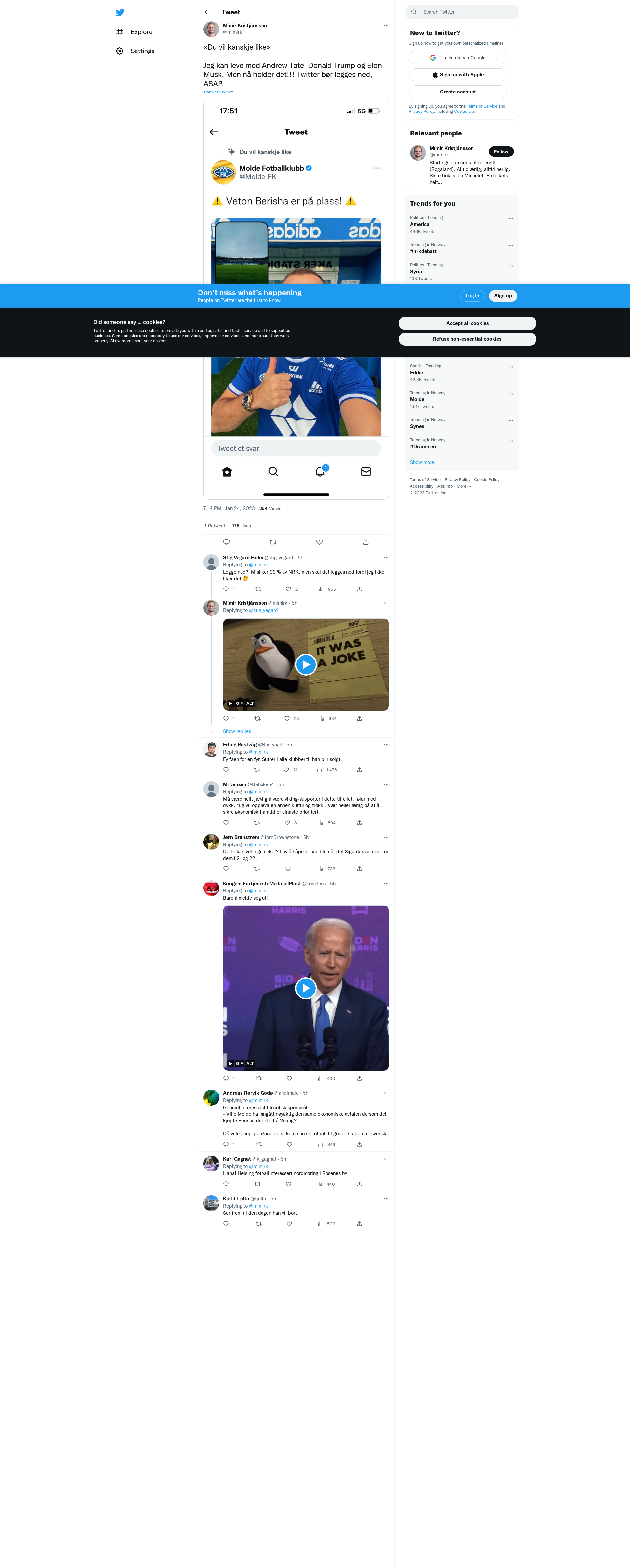 «Du vil kanskje like»\n\nJeg kan leve med Andrew Tate, Donald Trump og Elon Musk. Men nå holder det!!! Twitter bør legges ned, ASAP. https://t.co/V7Lgm5K1az