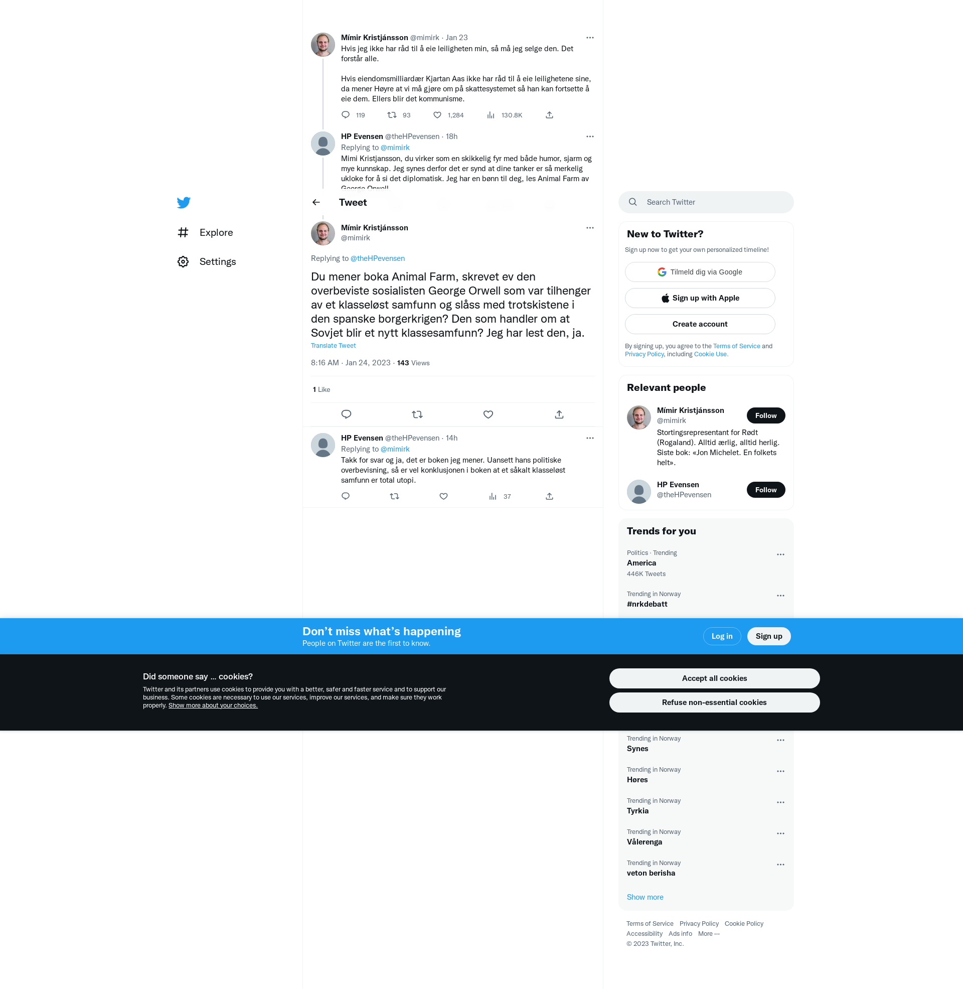 @theHPevensen Du mener boka Animal Farm, skrevet ev den overbeviste sosialisten George Orwell som var tilhenger av et klasseløst samfunn og slåss med trotskistene i den spanske borgerkrigen? Den som handler om at Sovjet blir et nytt klassesamfunn? Jeg har lest den, ja.