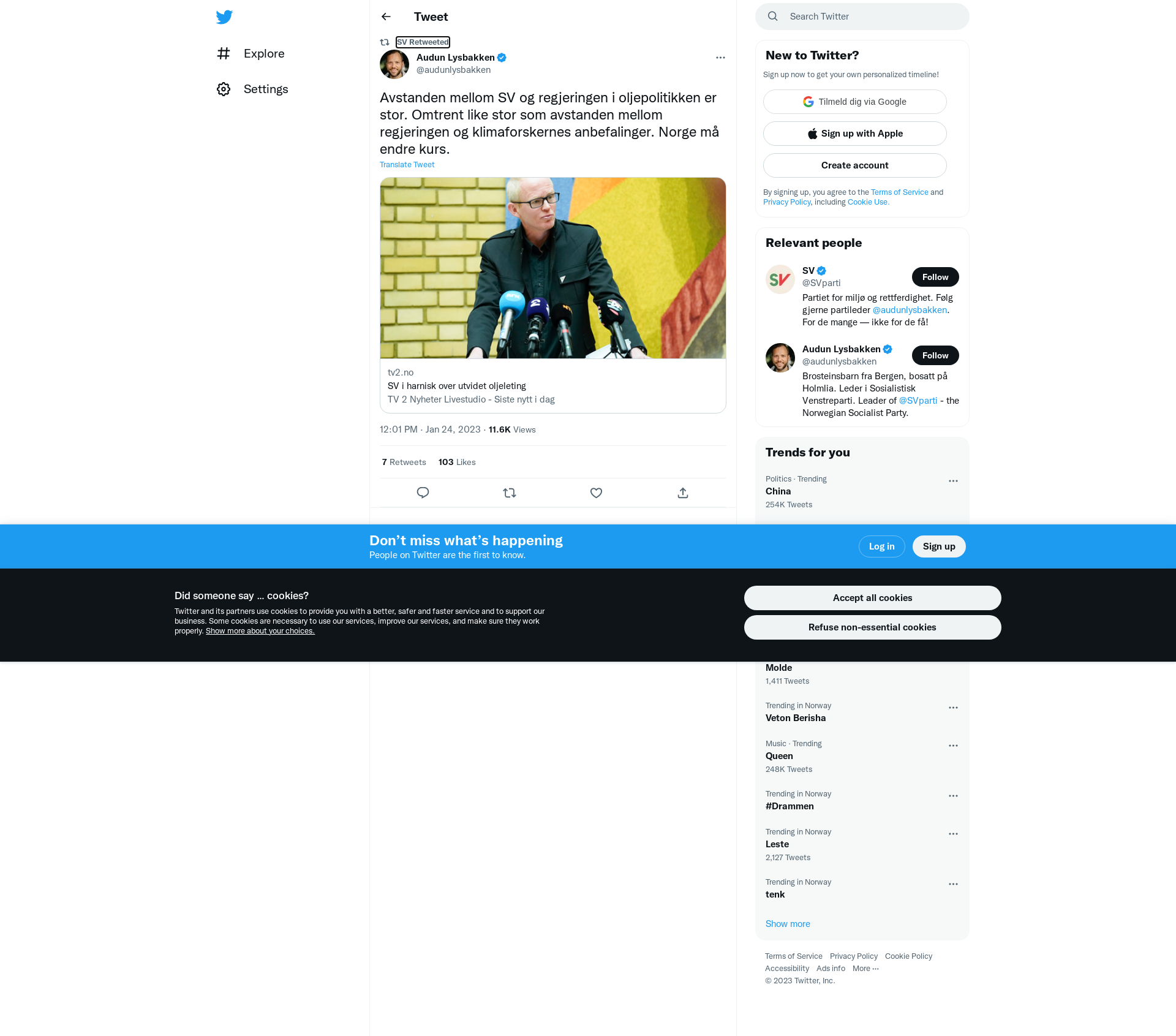 RT @audunlysbakken: Avstanden mellom SV og regjeringen i oljepolitikken er stor. Omtrent like stor som avstanden mellom regjeringen og klimaforskernes anbefalinger. Norge må endre kurs. https://t.co/9hqyIdxycg