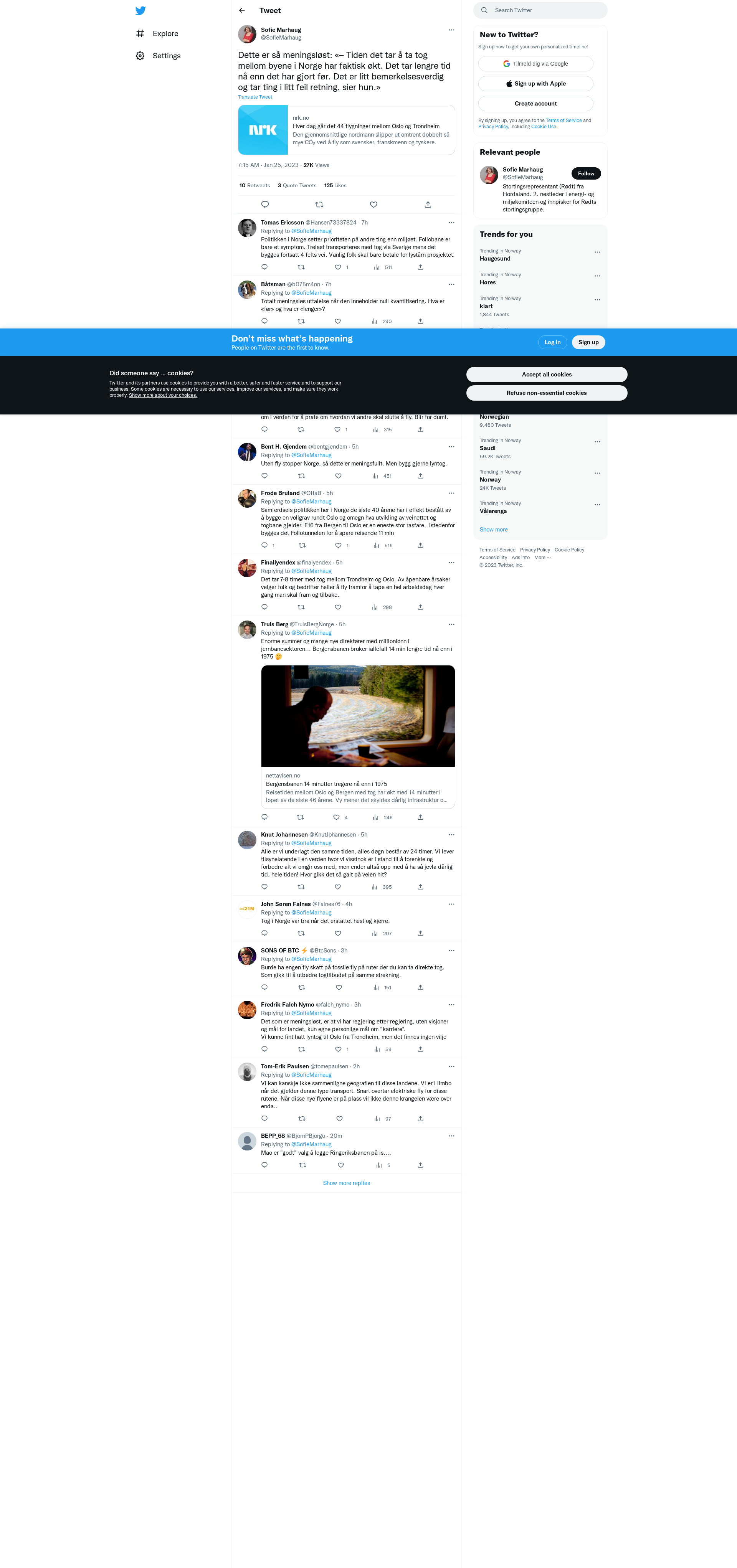 Dette er så meningsløst: «– Tiden det tar å ta tog mellom byene i Norge har faktisk økt. Det tar lengre tid nå enn det har gjort før. Det er litt bemerkelsesverdig og tar ting i litt feil retning, sier hun.»\n\nhttps://t.co/tGA04VRENJ