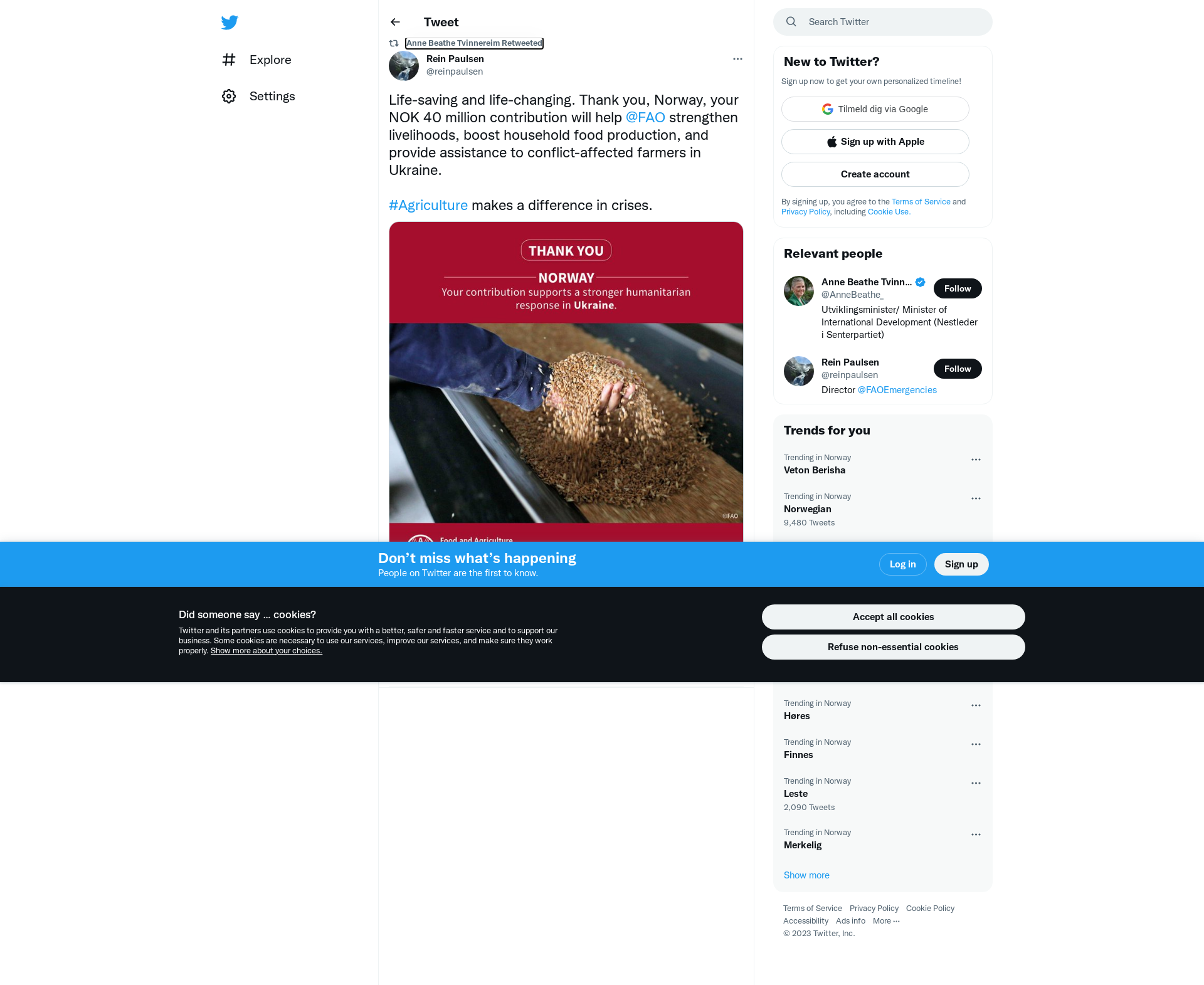 RT @reinpaulsen: Life-saving and life-changing. Thank you, Norway, your NOK 40 million contribution will help @FAO strengthen livelihoods, boost household food production, and provide assistance to conflict-affected farmers in Ukraine.\n\n#Agriculture makes a difference in crises. https://t.co/XcwkyiM3bC