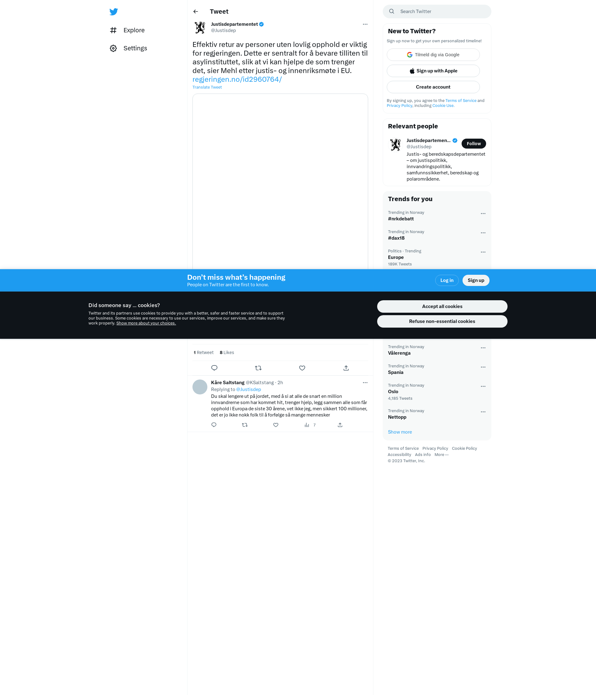 Effektiv retur av personer uten lovlig opphold er viktig for regjeringen. Dette er sentralt for å bevare tilliten til asylinstituttet, slik at vi kan hjelpe de som trenger det, sier Mehl etter justis- og innenriksmøte i EU. https://t.co/bYeFQnGrcV https://t.co/O1RF6ieWQf