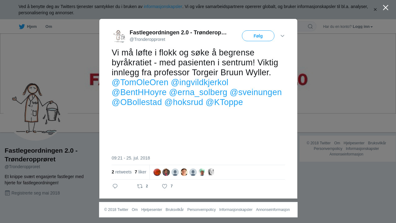 RT @Tronderopproret: Vi må løfte i flokk og søke å begrense byråkratiet - med pasienten i sentrum! Viktig innlegg fra professor Torgeir… https://t.co/v1nZ7Um6mw
