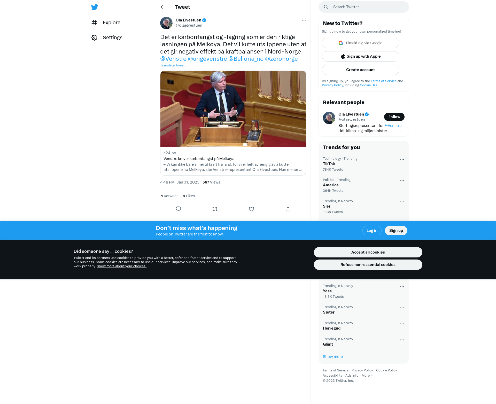 – Vi kan ikke bare si nei til kraft fra land, for vi er helt avhengig av å kutte utslippene fra Melkøya, sier Venstre-representant Ola Elvestuen. Han mener det kun finnes én løsning på saken: karbonfangst og -lagring.
