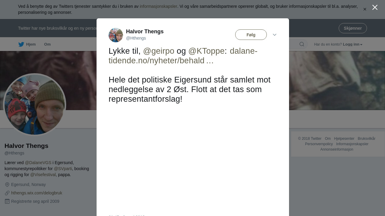 RT @Hthengs: Lykke til, @geirpo og @KToppe: https://t.co/tPvhxKhZzH Hele det politiske Eigersund står samlet mot nedleggelse av 2 Øst. Flo…