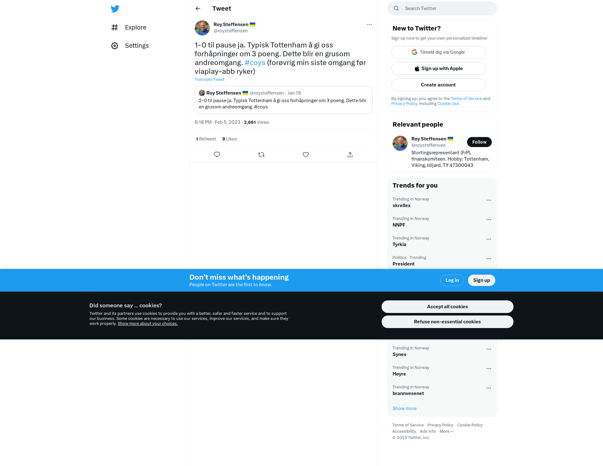 1-0 til pause ja. Typisk Tottenham å gi oss forhåpninger om 3 poeng. Dette blir en grusom andreomgang. #coys (forøvrig min siste omgang før viaplay-abb ryker)