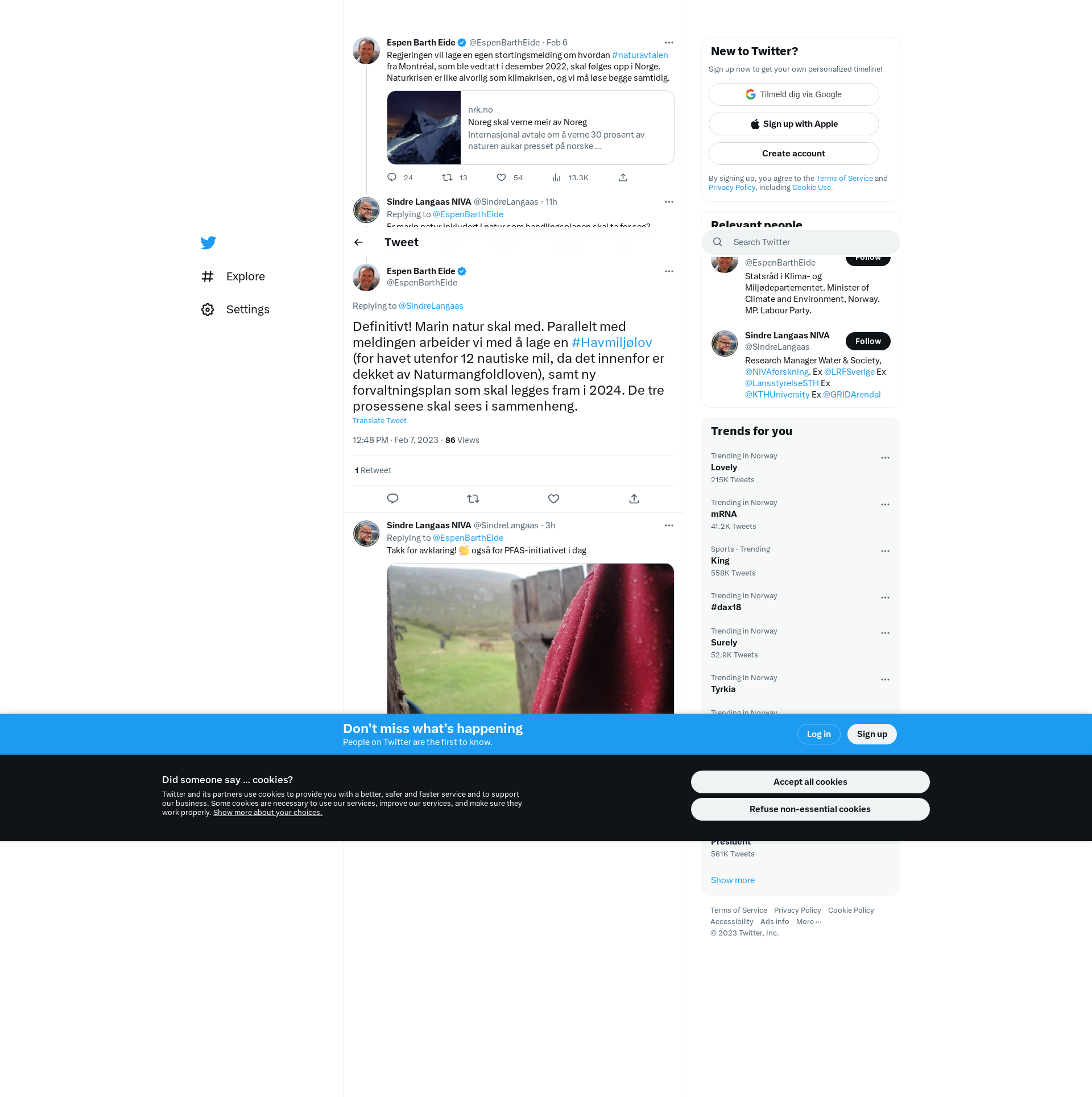 @SindreLangaas Definitivt! Marin natur skal med. Parallelt med meldingen arbeider vi med å lage en #Havmiljølov (for havet utenfor 12 nautiske mil, da det innenfor er dekket av Naturmangfoldloven), samt ny forvaltningsplan som skal legges fram i 2024. De tre prosessene skal sees i sammenheng.