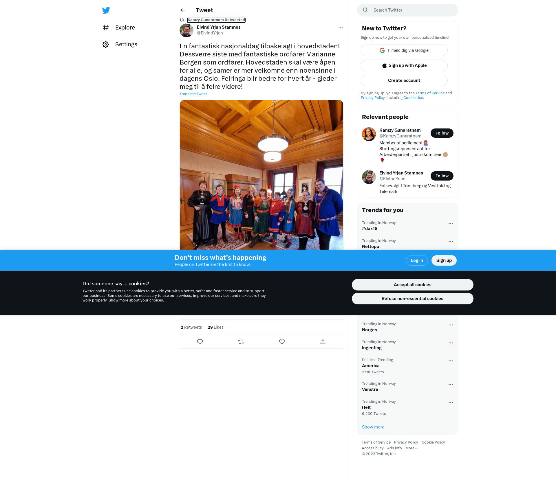 RT @EivindYrjan: En fantastisk nasjonaldag tilbakelagt i hovedstaden! Dessverre siste med fantastiske ordfører Marianne Borgen som ordfører. Hovedstaden skal være åpen for alle, og samer er mer velkomne enn noensinne i dagens Oslo. Feiringa blir bedre for hvert år - gleder meg til å feire videre! https://t.co/hGBWoRSM2K