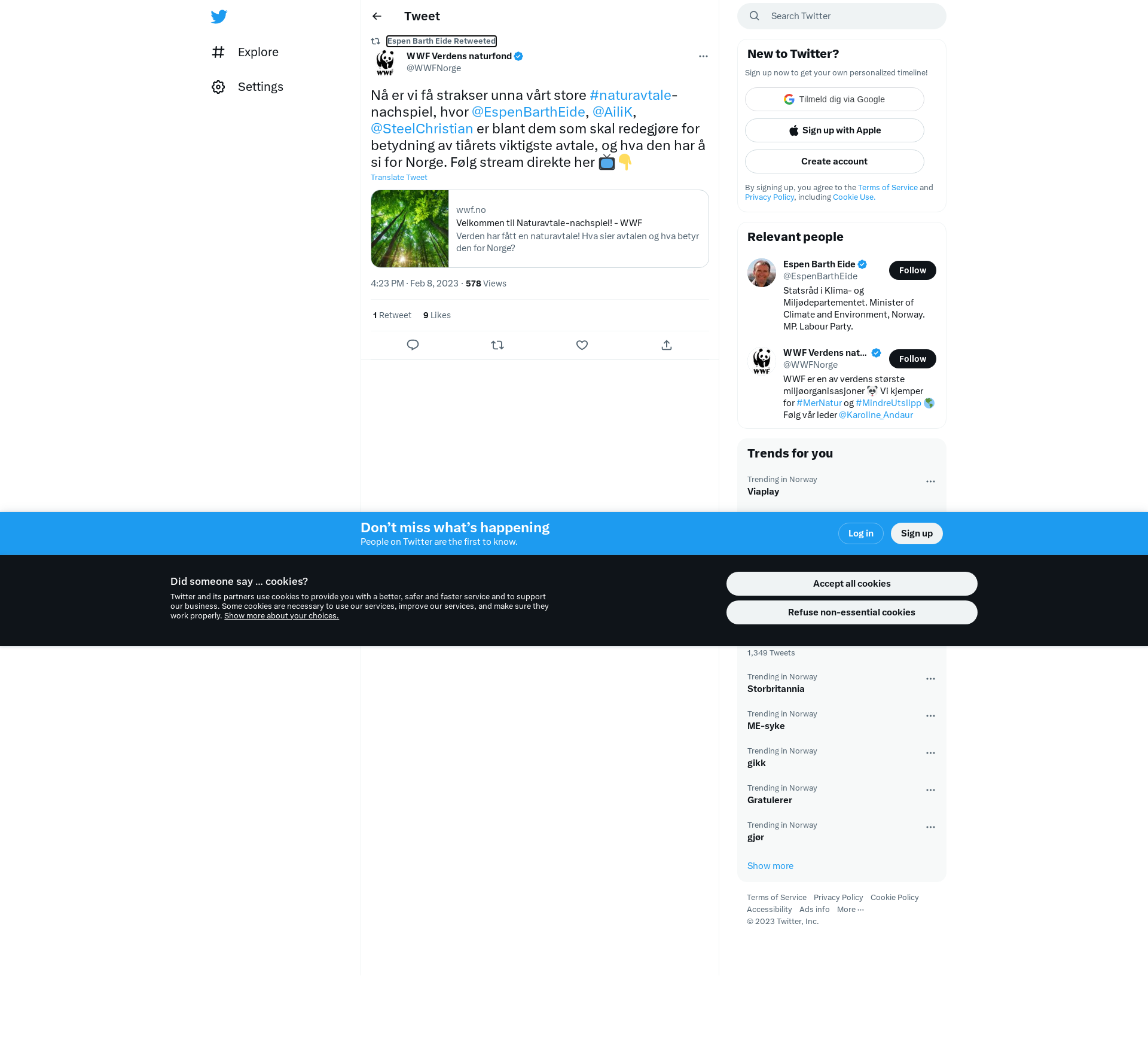 RT @WWFNorge: Nå er vi få strakser unna vårt store #naturavtale-nachspiel, hvor @EspenBarthEide, @AiliK, @SteelChristian er blant dem som skal redegjøre for betydning av tiårets viktigste avtale, og hva den har å si for Norge. Følg stream direkte her 📺👇 https://t.co/jccILzqIzB