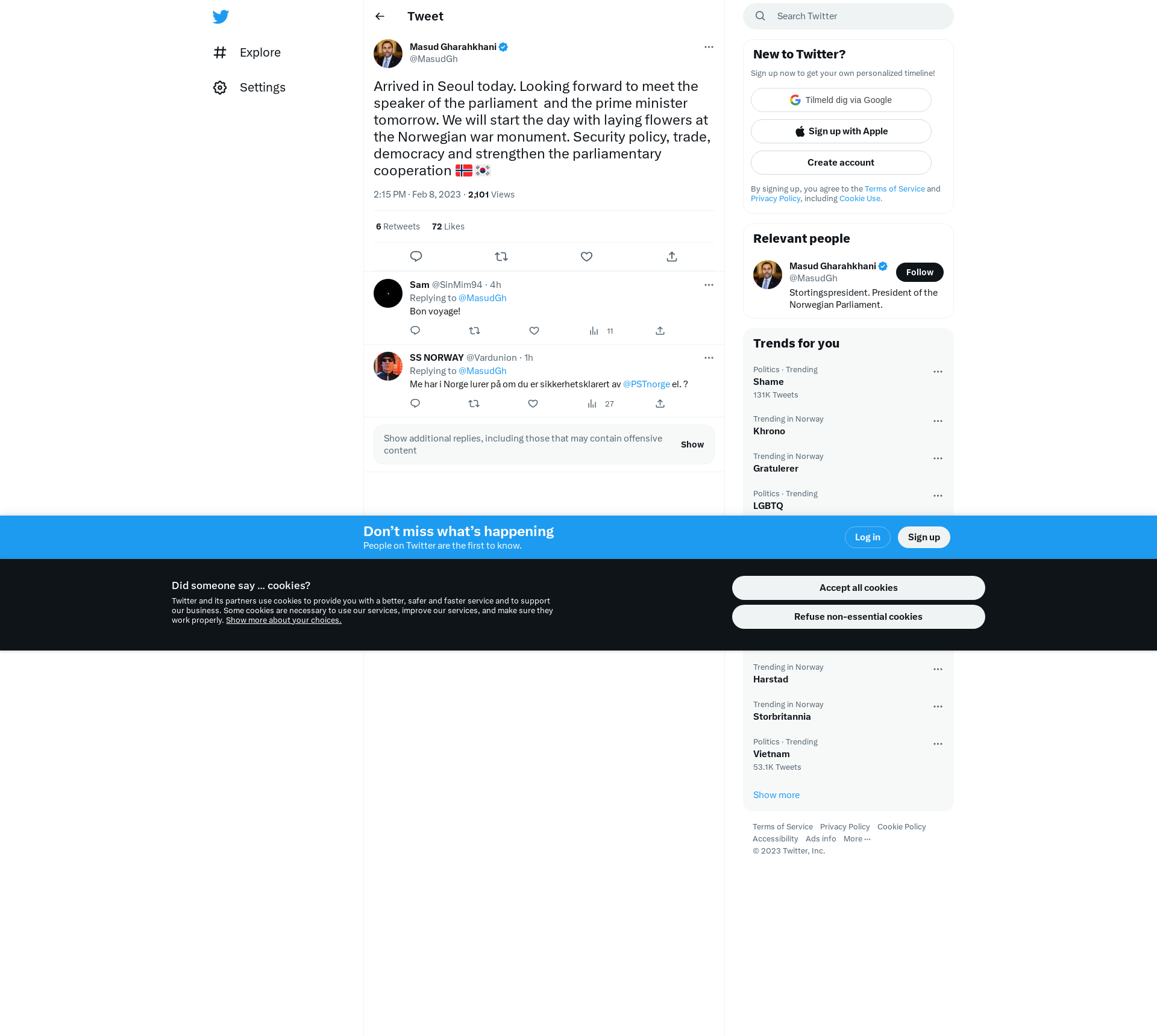 Arrived in Seoul today. Looking forward to meet the speaker of the parliament and the prime minister tomorrow. We will start the day with laying flowers at the Norwegian war monument. Security policy, trade, democracy and strengthen the parliamentary cooperation 🇳🇴🇰🇷