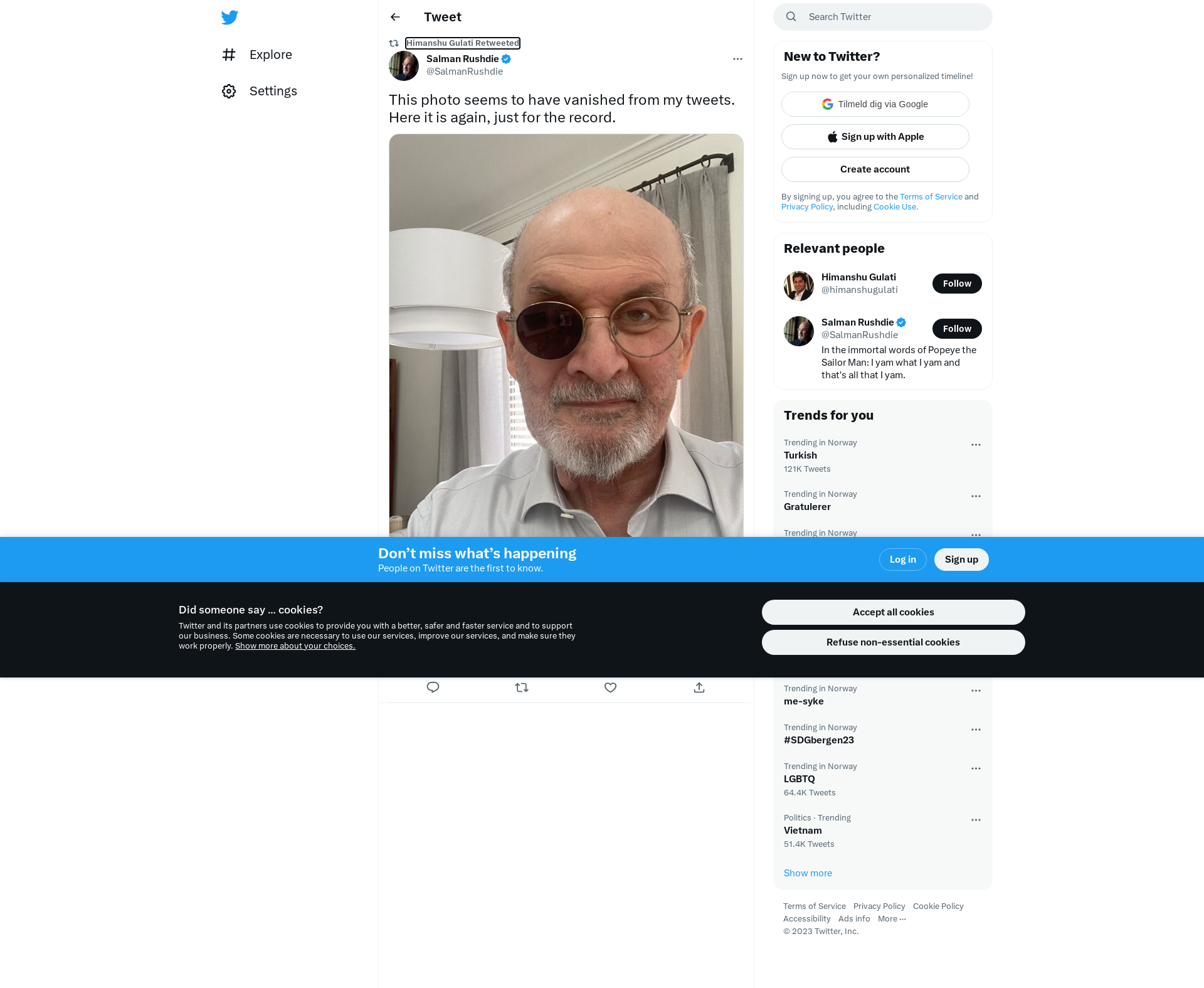 RT @SalmanRushdie: This photo seems to have vanished from my tweets. Here it is again, just for the record. https://t.co/nqt34gIuRW