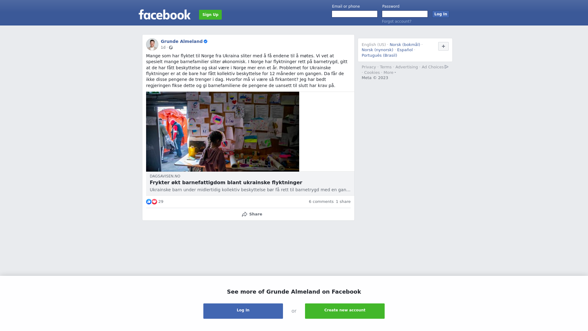 Mange som har flyktet til Norge fra Ukraina sliter med å få endene til å møtes. Vi vet at spesielt mange barnefamilier sliter økonomisk. I Norge har flyktninger rett på barnetrygd, gitt at de har fått beskyttelse og skal være i Norge mer enn et år. Problemet for Ukrainske flyktninger er at de bare har fått kollektiv beskyttelse for 12 måneder om gangen. Da får de ikke disse pengene de trenger i dag. Hvorfor må vi være så firkantent? Jeg har bedt regjeringen fikse dette og gi barnefamiliene de pengene de uansett til slutt har krav på.