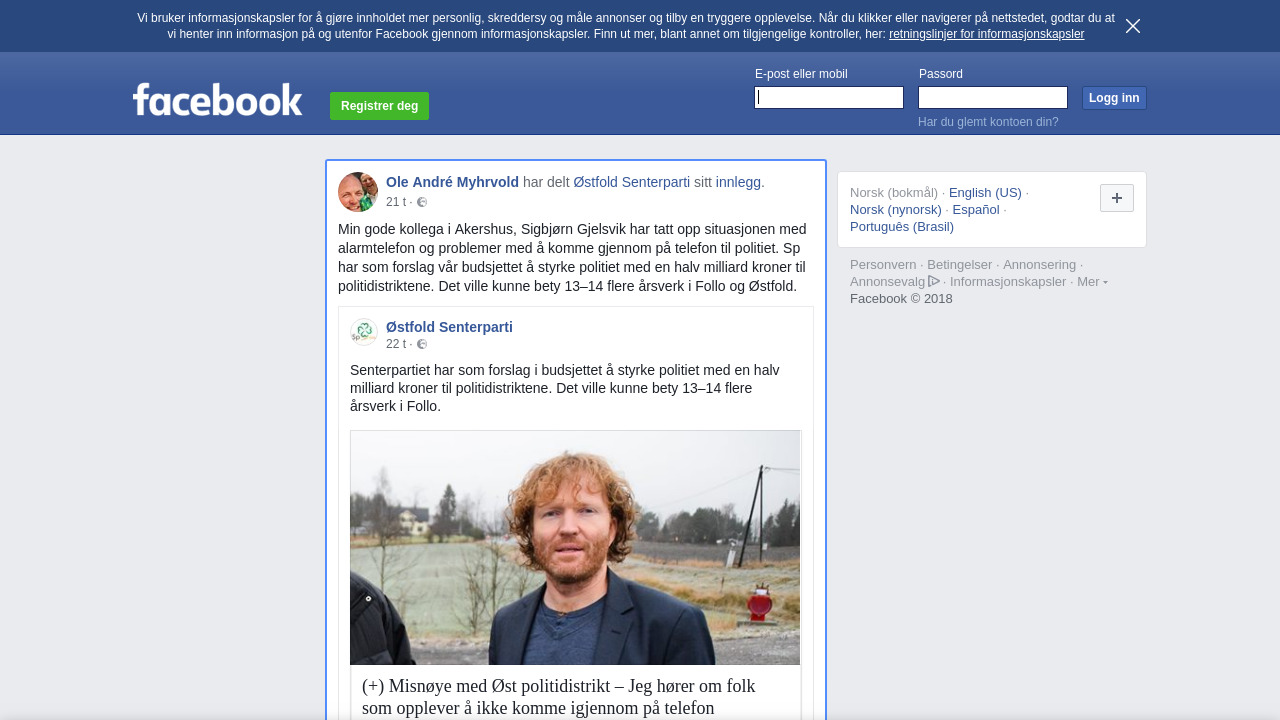 Min gode kollega i Akershus, Sigbjørn Gjelsvik har tatt opp situasjonen med alarmtelefon og problemer med å komme gjennom på telefon til politiet. Sp har som forslag vår budsjettet å styrke politiet med en halv milliard kroner til politidistriktene. Det ville kunne bety 13–14 flere årsverk i Follo og Østfold.