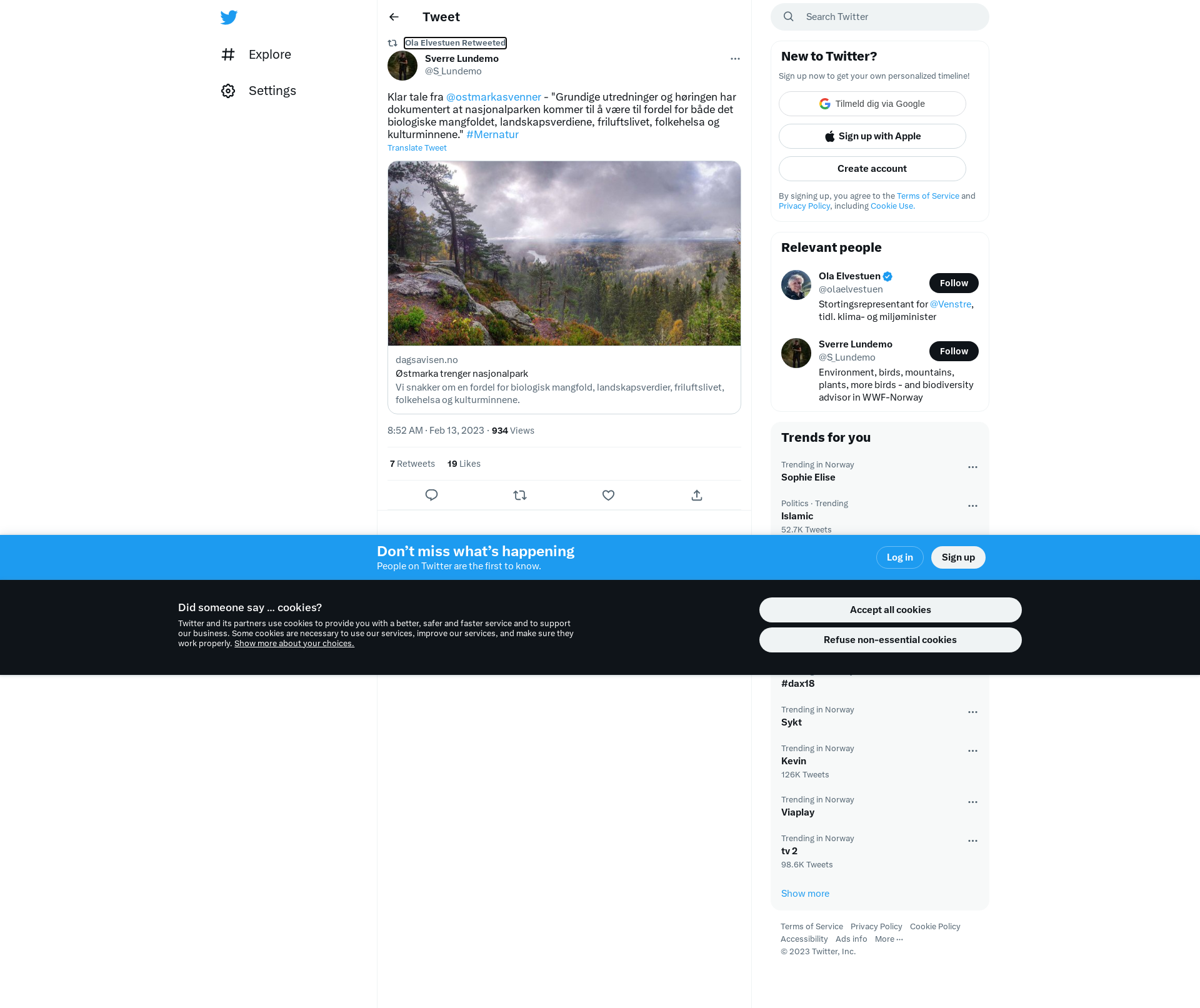 RT @S_Lundemo: Klar tale fra @ostmarkasvenner - "Grundige utredninger og høringen har dokumentert at nasjonalparken kommer til å være til fordel for både det biologiske mangfoldet, landskapsverdiene, friluftslivet, folkehelsa og kulturminnene." #Mernatur\nhttps://t.co/Jko5wSXQF7