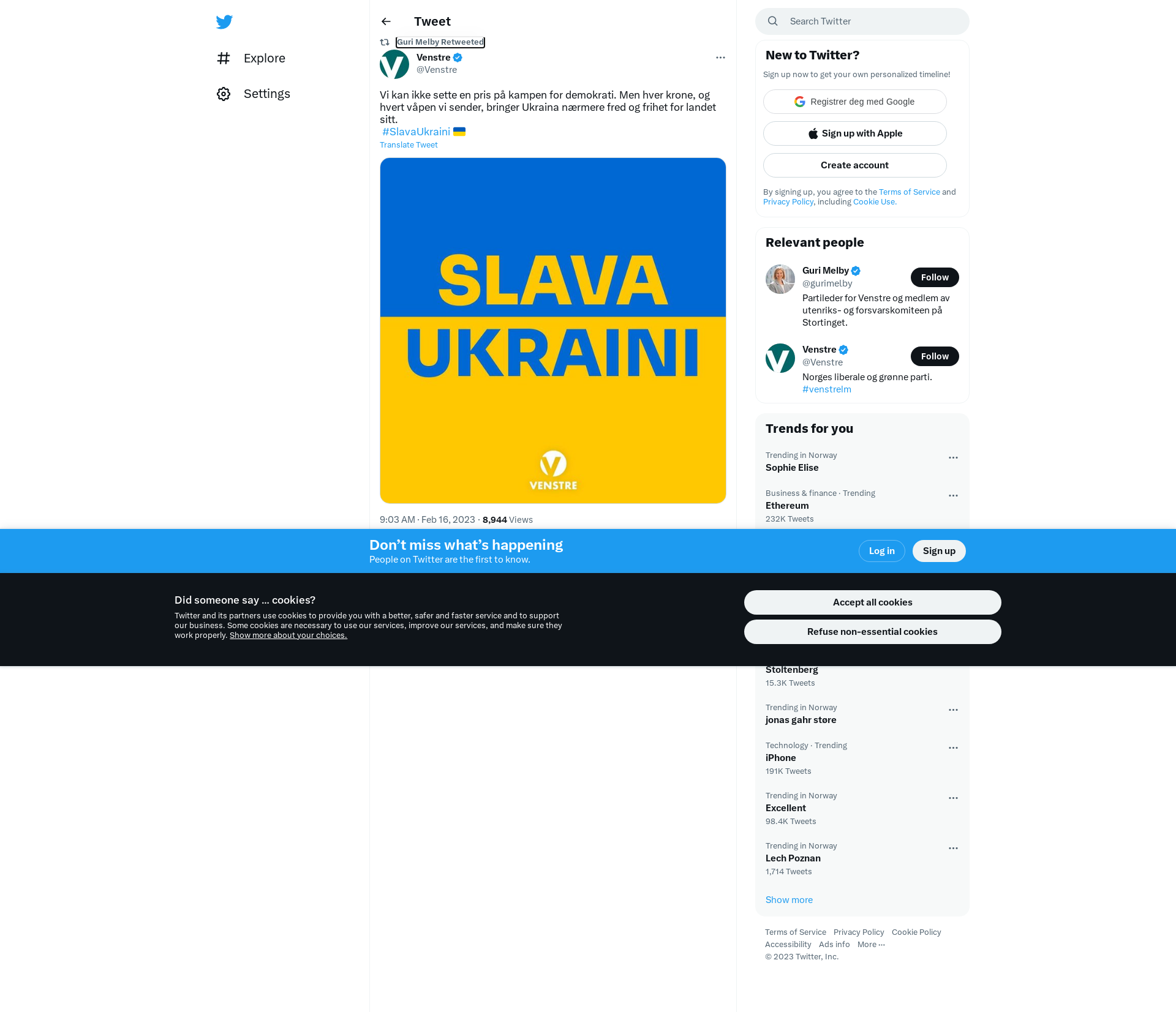 RT @Venstre: Vi kan ikke sette en pris på kampen for demokrati. Men hver krone, og hvert våpen vi sender, bringer Ukraina nærmere fred og frihet for landet sitt.\n #SlavaUkraini 🇺🇦 https://t.co/V25f6uAExh