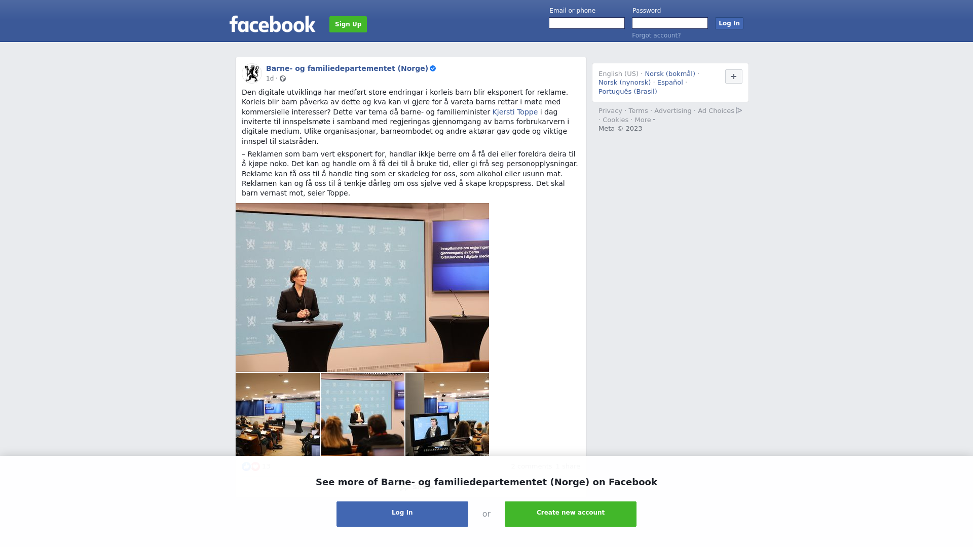Den digitale utviklinga har medført store endringar i korleis barn blir eksponert for reklame. Korleis blir barn påverka av dette og kva kan vi gjere for å vareta barns rettar i møte med kommersielle interesser? Dette var tema då barne- og familieminister Kjersti Toppe i dag inviterte til innspelsmøte i samband med regjeringas gjennomgang av barns forbrukarvern i digitale medium. Ulike organisasjonar, barneombodet og andre aktørar gav gode og viktige innspel til statsråden.\n\n– Reklamen som barn vert eksponert for, handlar ikkje berre om å få dei eller foreldra deira til å kjøpe noko. Det kan og handle om å få dei til å bruke tid, eller gi frå seg personopplysningar. Reklame kan få oss til å handle ting som er skadeleg for oss, som alkohol eller usunn mat. Reklamen kan og få oss til å tenkje dårleg om oss sjølve ved å skape kroppspress. Det skal barn vernast mot, seier Toppe.