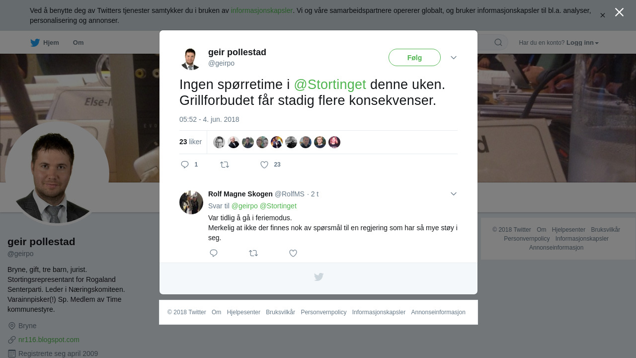 Ingen spørretime i @Stortinget denne uken. Grillforbudet får stadig flere konsekvenser.