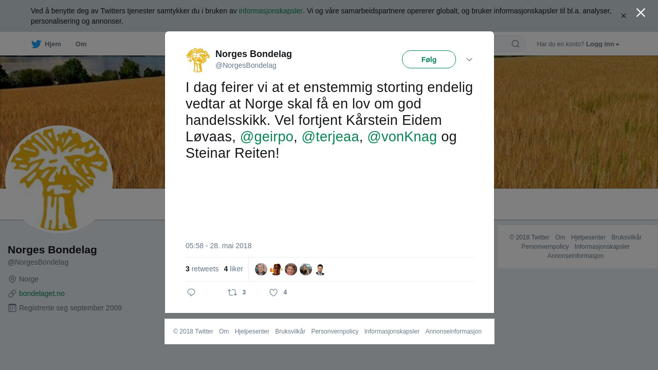 RT @NorgesBondelag: I dag feirer vi at et enstemmig storting endelig vedtar at Norge skal få en lov om god handelsskikk. Vel fortjent K… https://t.co/RbPb5405lV