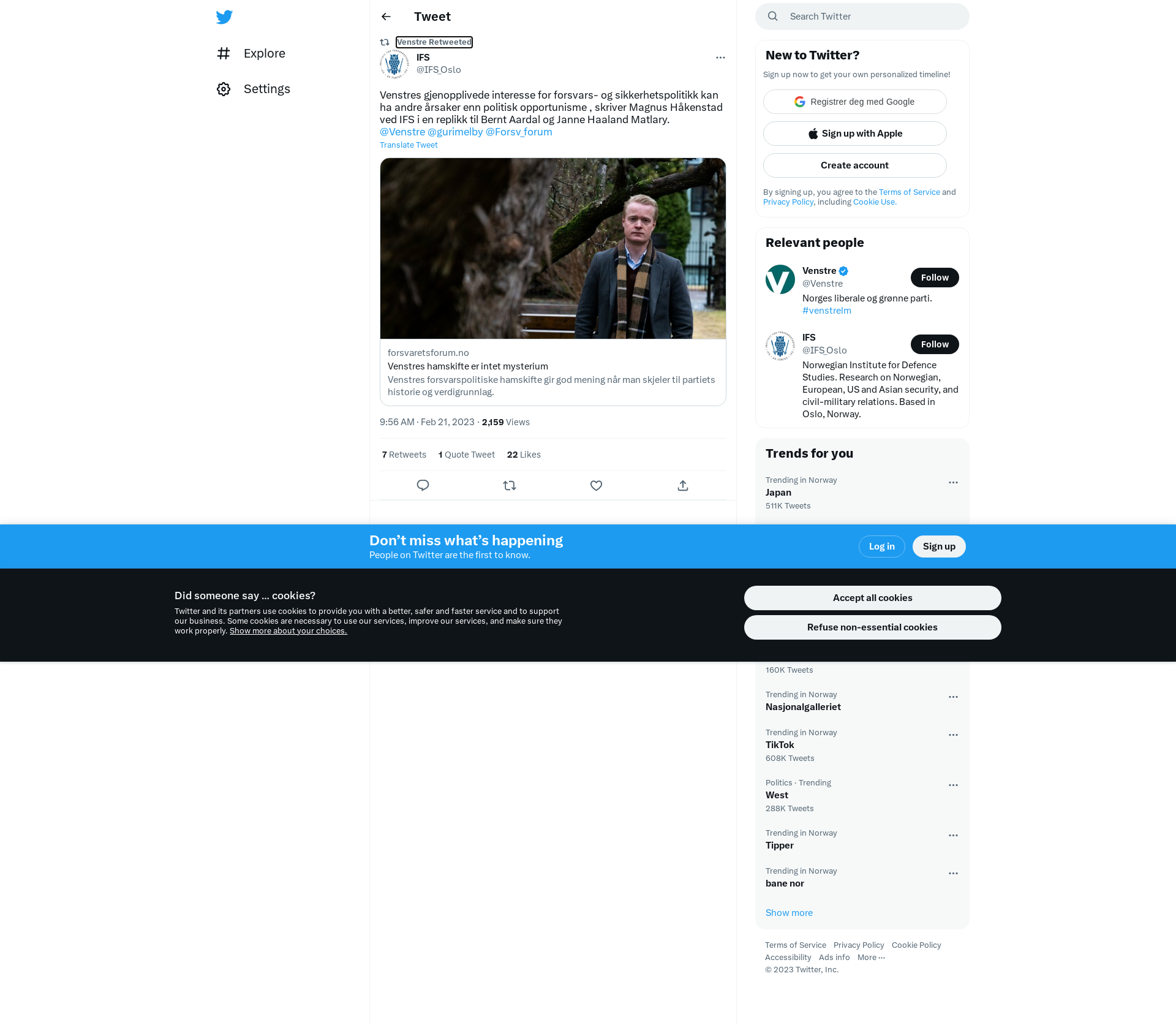 RT @IFS_Oslo: Venstres gjenopplivede interesse for forsvars- og sikkerhetspolitikk kan ha andre årsaker enn politisk opportunisme , skriver Magnus Håkenstad ved IFS i en replikk til Bernt Aardal og Janne Haaland Matlary.\n@Venstre @gurimelby @Forsv_forum \n\nhttps://t.co/DWs9P5YOsK