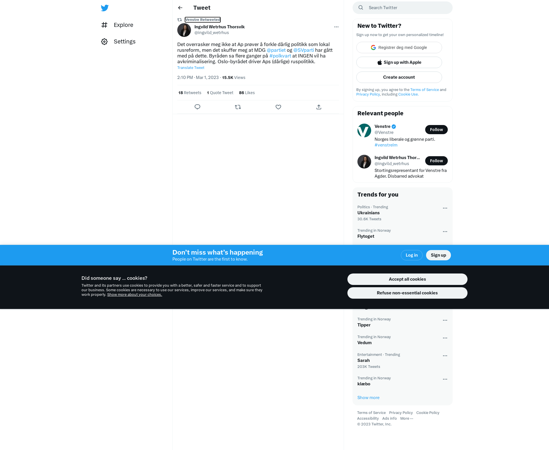 RT @ingvild_wetrhus: Det overrasker meg ikke at Ap prøver å forkle dårlig politikk som lokal rusreform, men det skuffer meg at MDG @partiet og @SVparti har gått med på dette. Byråden sa flere ganger på #polkvart at INGEN vil ha avkriminalisering. Oslo-byrådet driver Aps (dårlige) ruspolitikk.