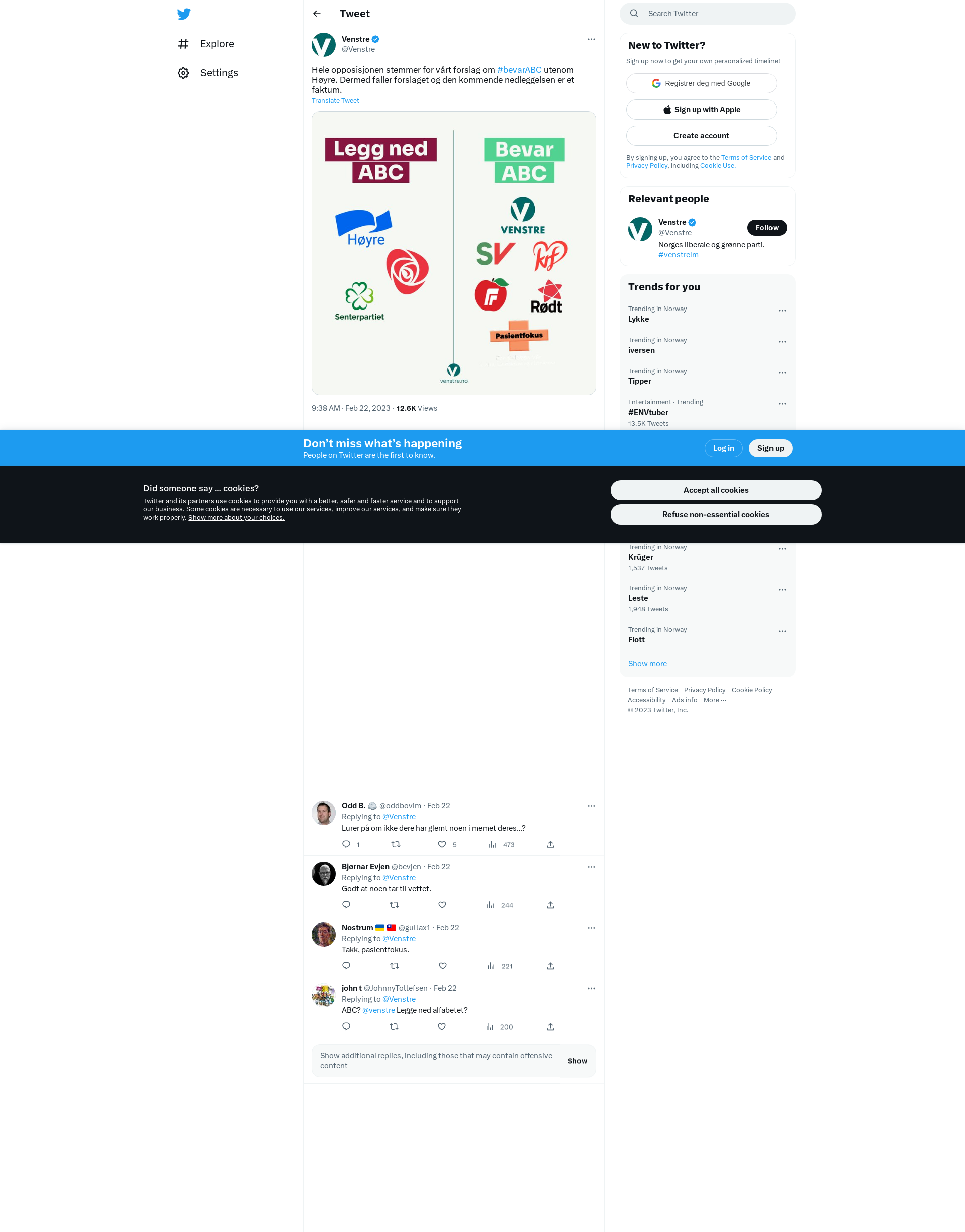 Hele opposisjonen stemmer for vårt forslag om #bevarABC utenom Høyre. Dermed faller forslaget og den kommende nedleggelsen er et faktum. https://t.co/ffbOWlMDPC