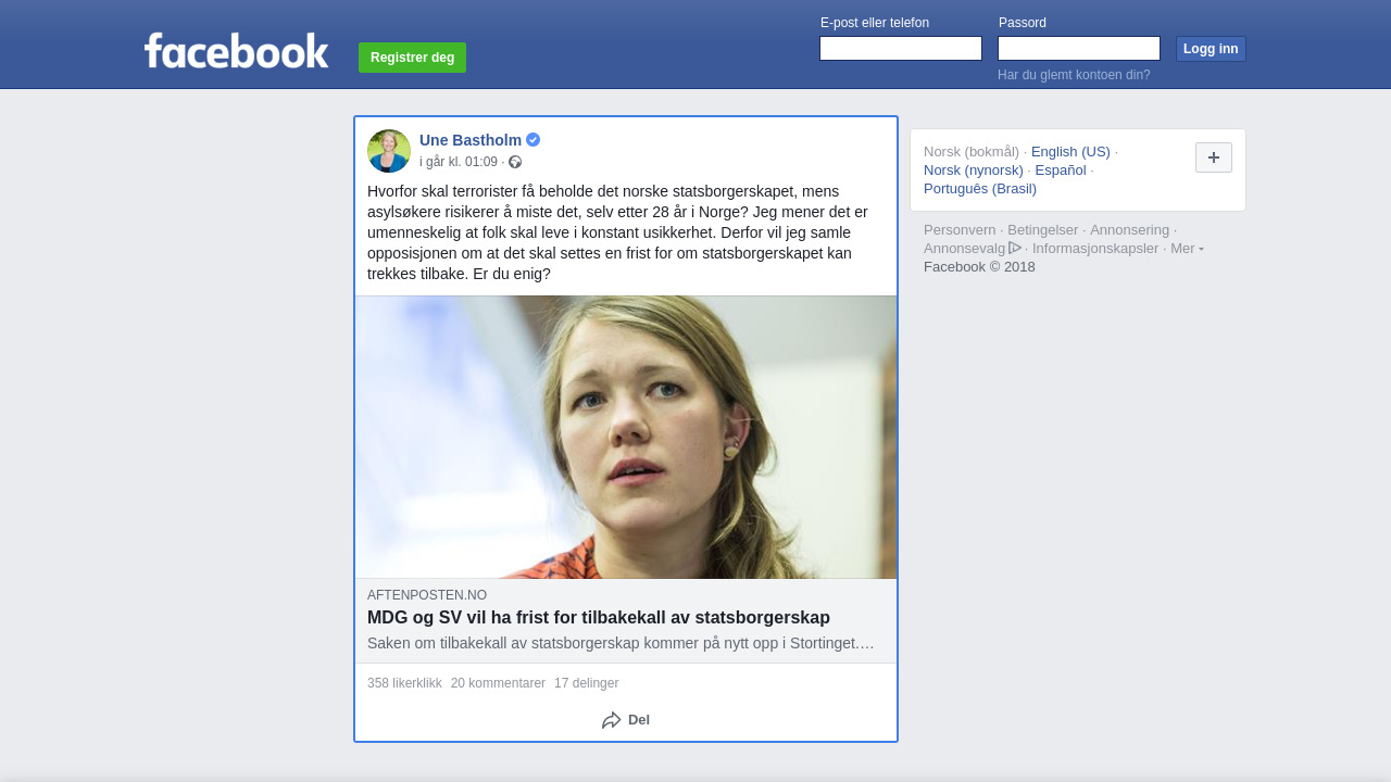 Hvorfor skal terrorister få beholde det norske statsborgerskapet, mens asylsøkere risikerer å miste det, selv etter 28 år i Norge? Jeg mener det er umenneskelig at folk skal leve i konstant usikkerhet. Derfor vil jeg samle opposisjonen om at det skal settes en frist for om statsborgerskapet kan trekkes tilbake. Er du enig?
