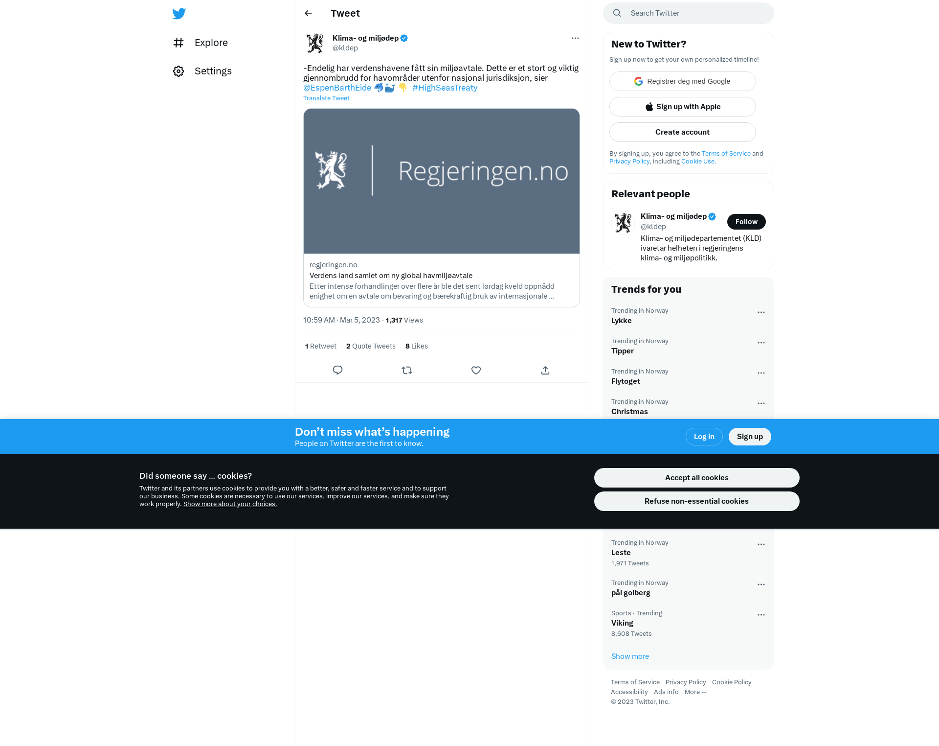 Etter intense forhandlinger over flere år ble det sent lørdag kveld oppnådd enighet om en avtale om bevaring og bærekraftig bruk av internasjonale havområder. Norge er svært fornøyd med resultatet. Avtalen vil være et viktig bidrag for å styrke havforv...