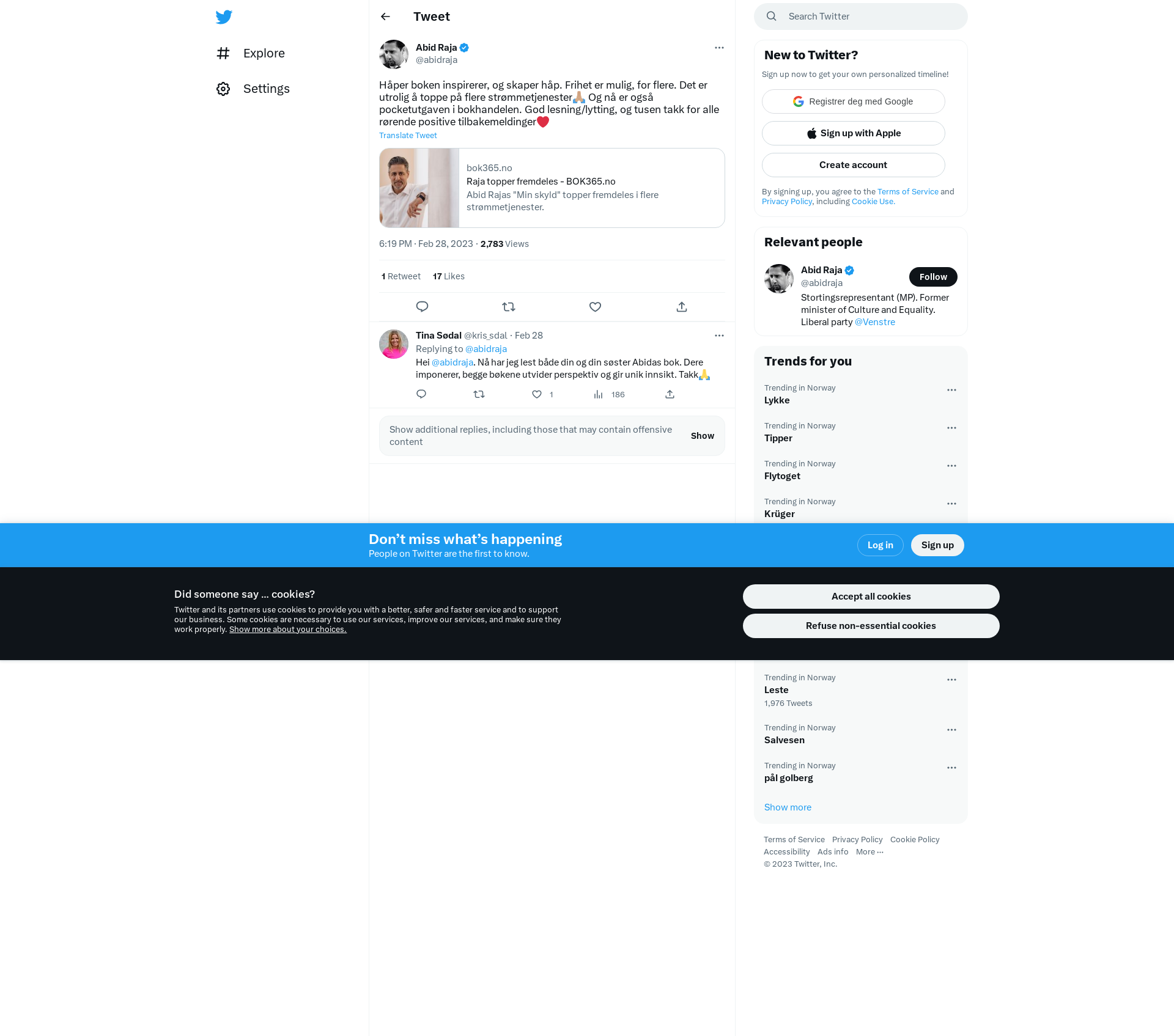 Håper boken inspirerer, og skaper håp. Frihet er mulig, for flere. Det er utrolig å toppe på flere strømmetjenester🙏🏽 Og nå er også pocketutgaven i bokhandelen. God lesning/lytting, og tusen takk for alle rørende positive tilbakemeldinger❤️\nhttps://t.co/VtUPvWXKkq