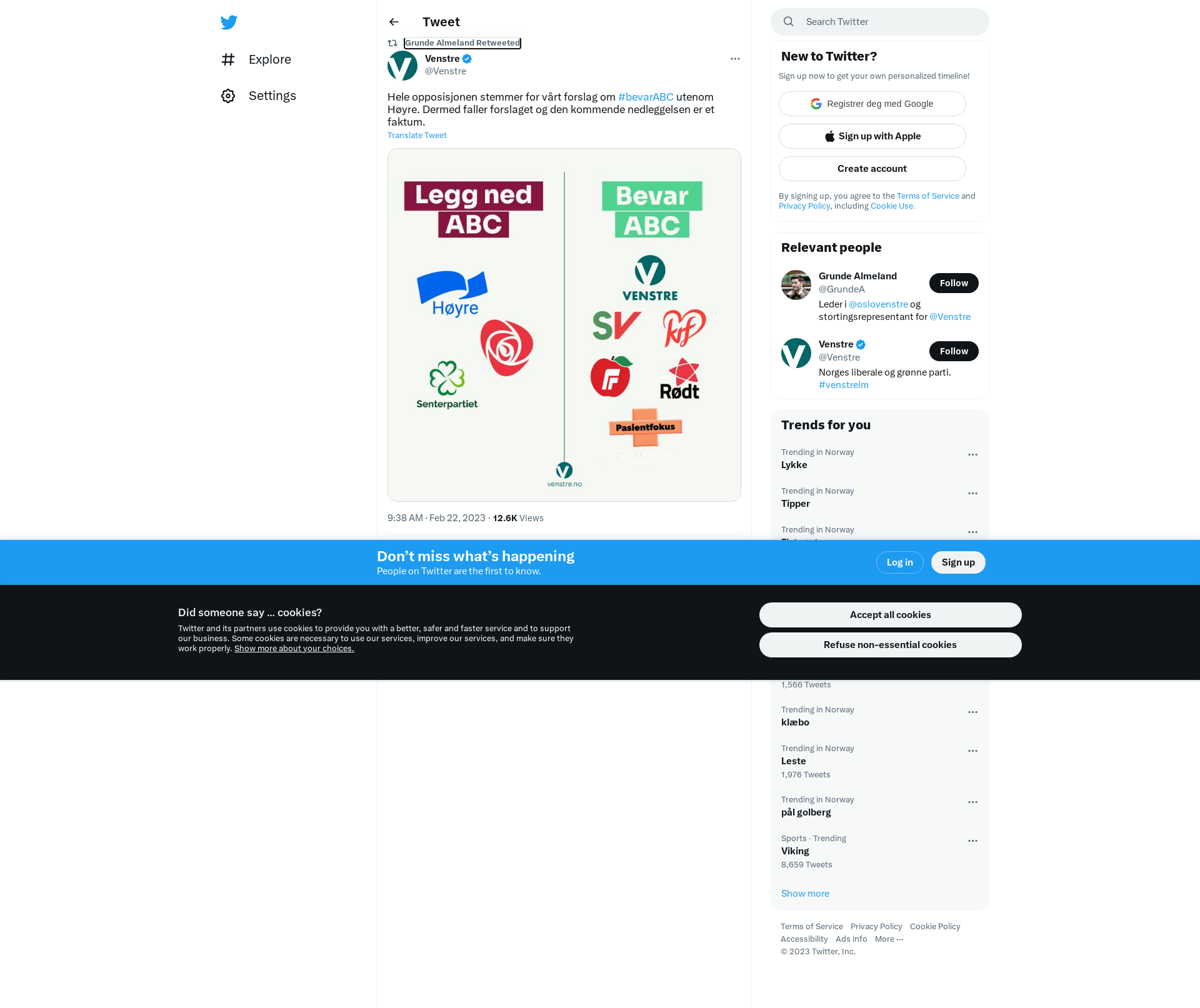 RT @Venstre: Hele opposisjonen stemmer for vårt forslag om #bevarABC utenom Høyre. Dermed faller forslaget og den kommende nedleggelsen er et faktum. https://t.co/ffbOWlMDPC