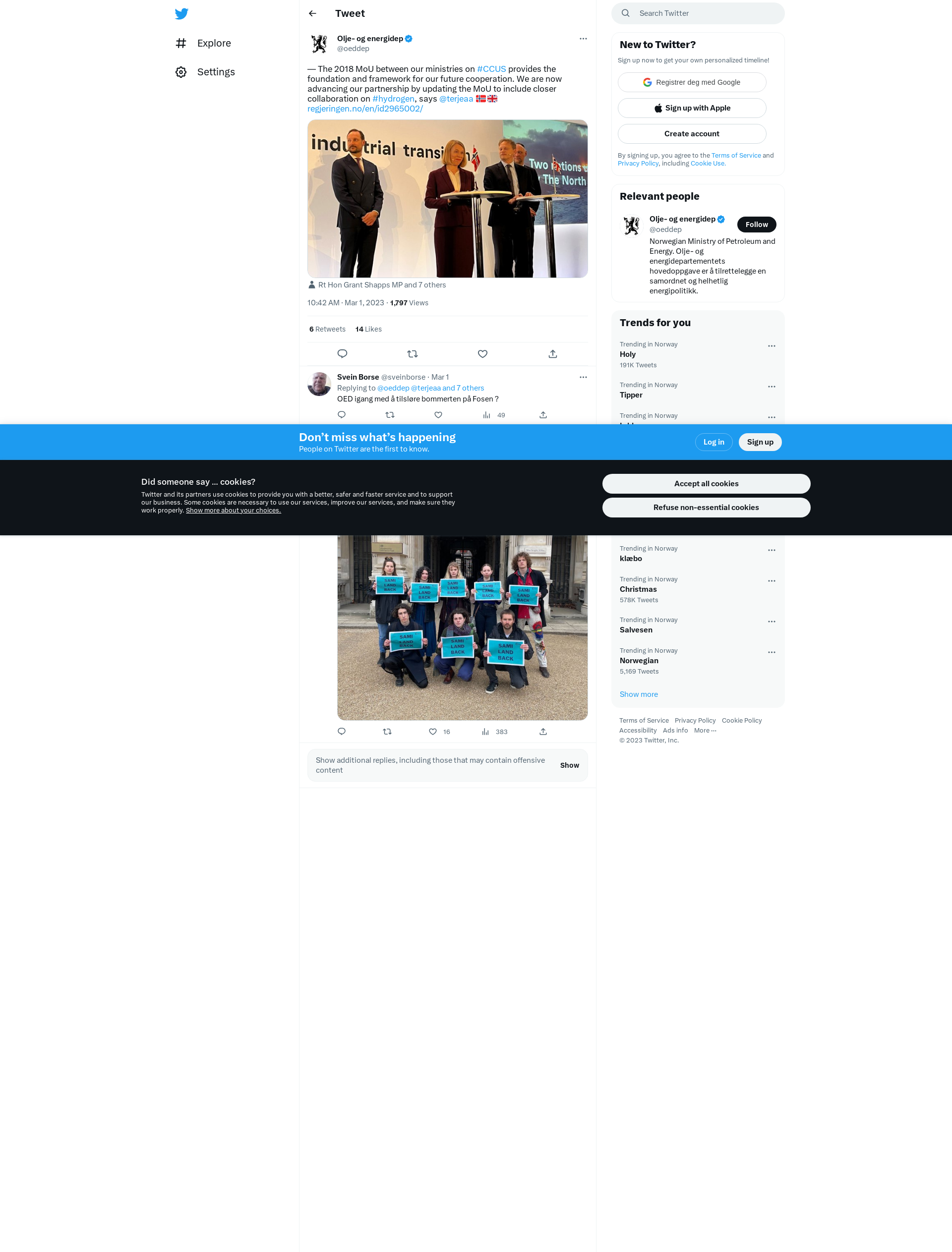— The 2018 MoU between our ministries on #CCUS provides the foundation and framework for our future cooperation. We are now advancing our partnership by updating the MoU to include closer collaboration on #hydrogen, says @terjeaa 🇳🇴🇬🇧https://t.co/QSeAmrGHn7 https://t.co/JoLNLZZS5I