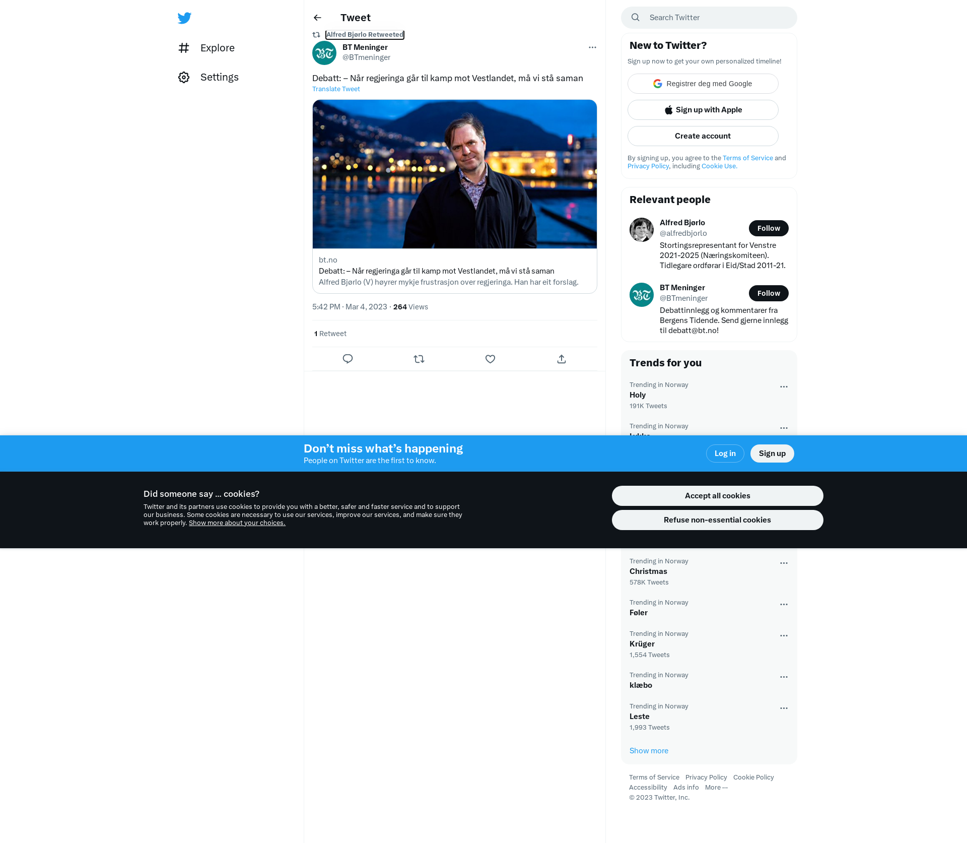 RT @BTmeninger: Debatt: – Når regjeringa går til kamp mot Vestlandet, må vi stå saman https://t.co/0VPhzyV8UP