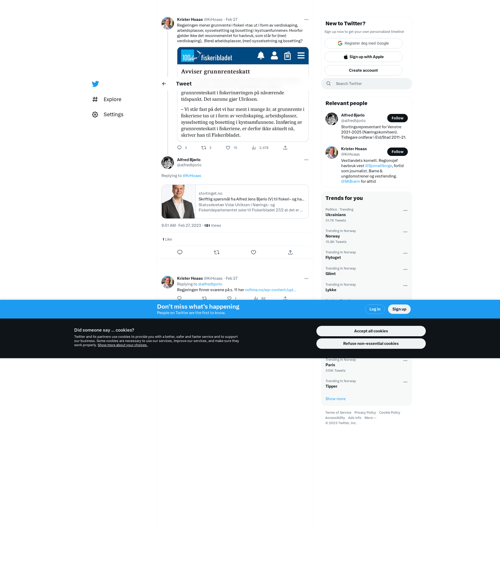 Skriftlig spørsmål fra Alfred Jens Bjørlo (V) til fiskeri- og havministeren