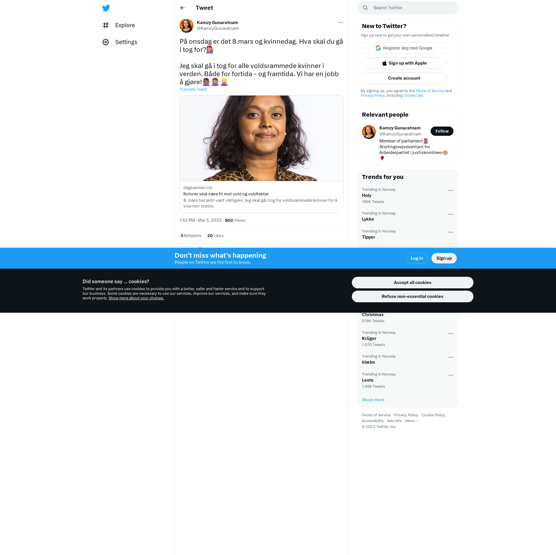 På onsdag er det 8.mars og kvinnedag. Hva skal du gå i tog for?💁🏽♀️\n\nJeg skal gå i tog for alle voldsrammede kvinner i verden. Både for fortida - og framtida. Vi har en jobb å gjøre!🙅🏾♀️🙅🏽♀️🙅🏼♀️\n\nhttps://t.co/osFbZHOJiw