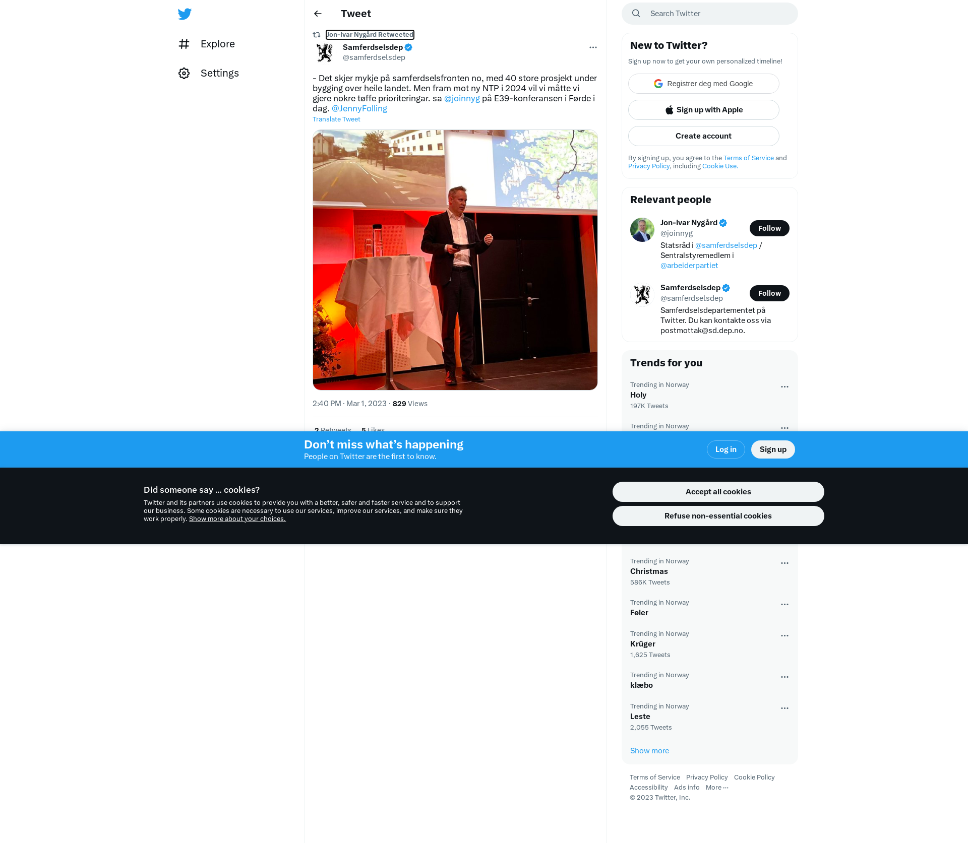 RT @samferdselsdep: - Det skjer mykje på samferdselsfronten no, med 40 store prosjekt under bygging over heile landet. Men fram mot ny NTP i 2024 vil vi måtte vi gjere nokre tøffe prioriteringar. sa @joinnyg på E39-konferansen i Førde i dag. @JennyFolling https://t.co/jHA4qgs71T